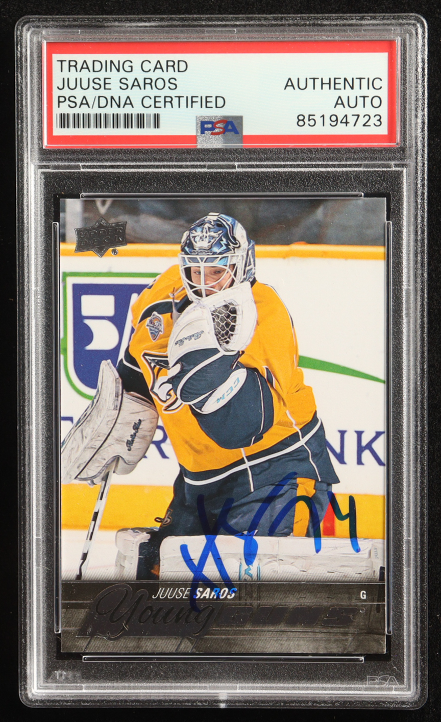 Juuse Saros Signed 2015-16 Upper Deck Series 2 Hockey Young Guns #464 RC (PSA)