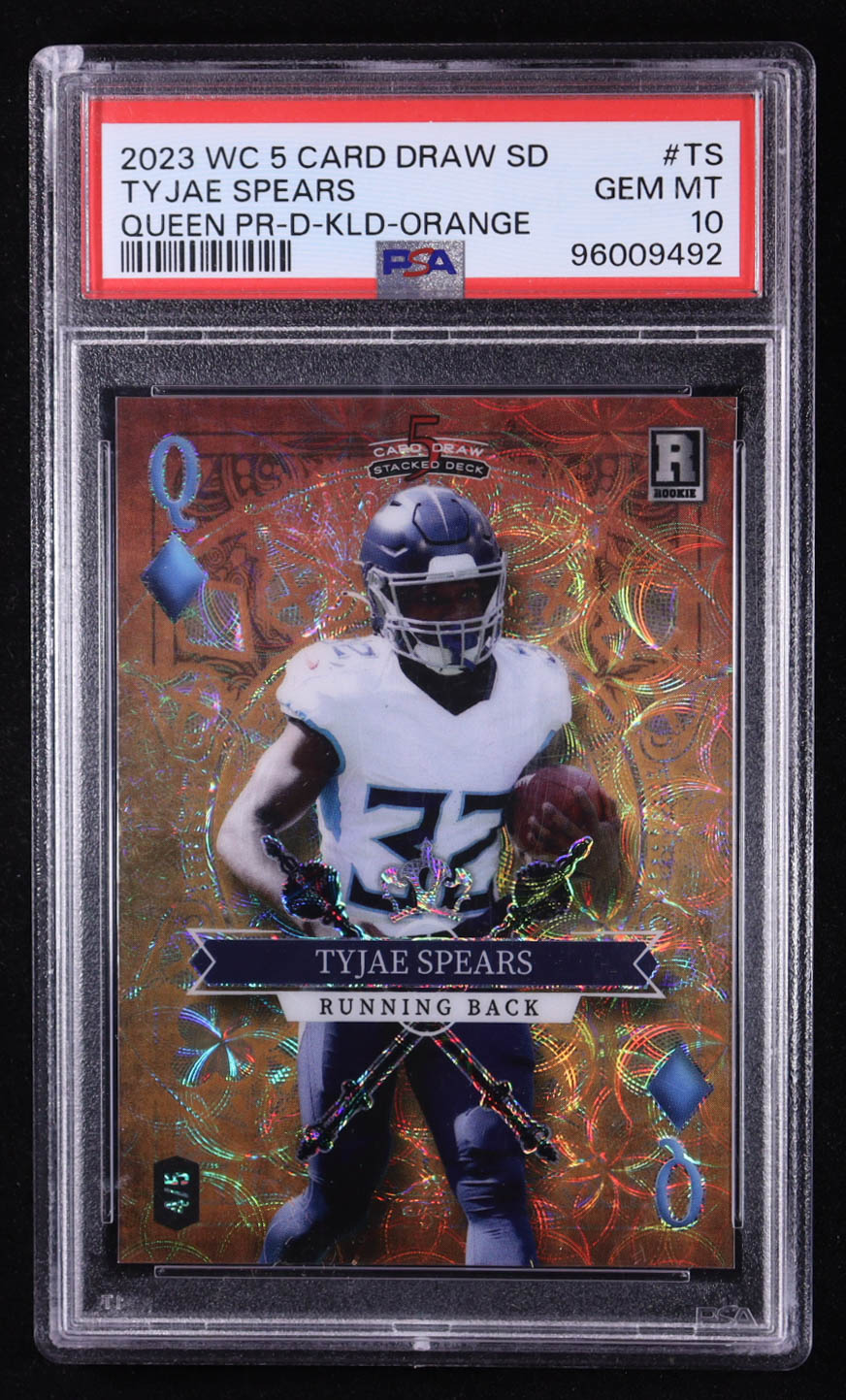 Tyjae Spears 2023 Wild Card 5 Card Draw Stacked Deck Queen Promo Orange #TS #4/5 RC (PSA 10)