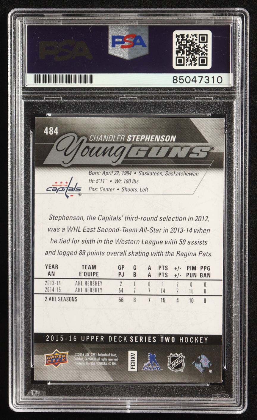 Chandler Stephenson Signed 2015-16 Upper Deck Series Two Hockey Young Guns #484 RC (PSA)