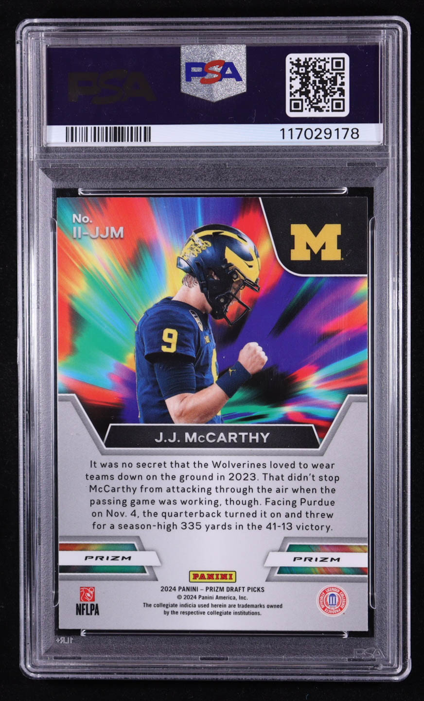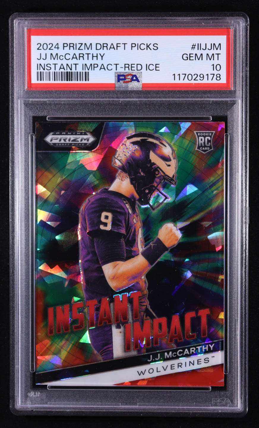 J.J. McCarthy 2024 Panini Prizm Draft Picks Instant Impact Red Ice #7 RC (PSA 10)