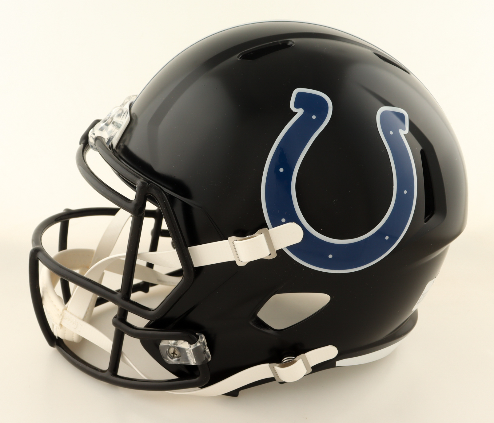 Riddell Indianapolis Colts full-size replica speed helmet. Hand-signed and inscribed by Edgerrin James (HOF).