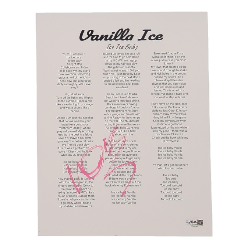 Vanilla Ice Signed "Ice Ice Baby" Lyric Sheet (JSA)