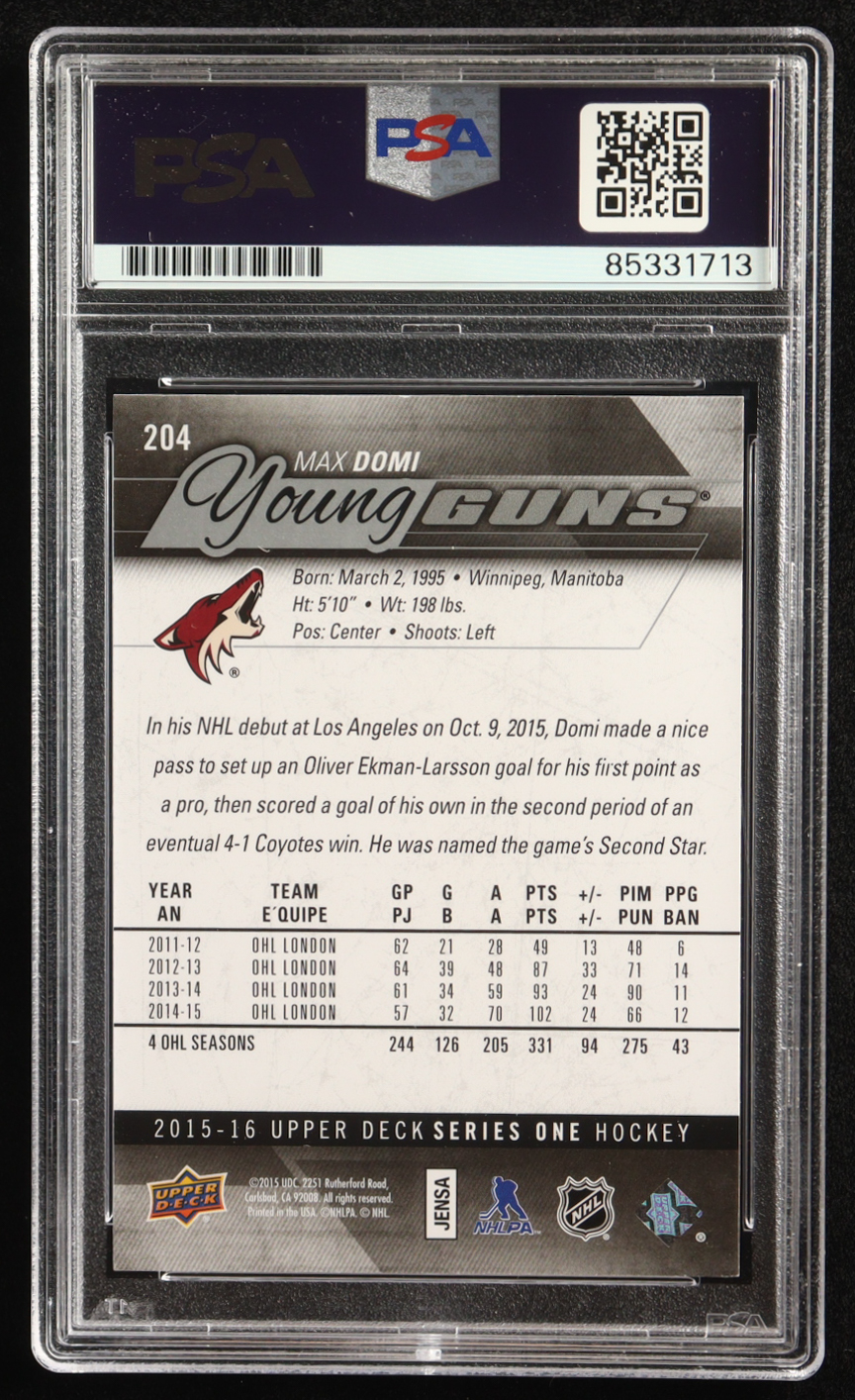 Max Domi Signed 2015-16 Upper Deck Series One Hockey Young Guns #204 RC (PSA)