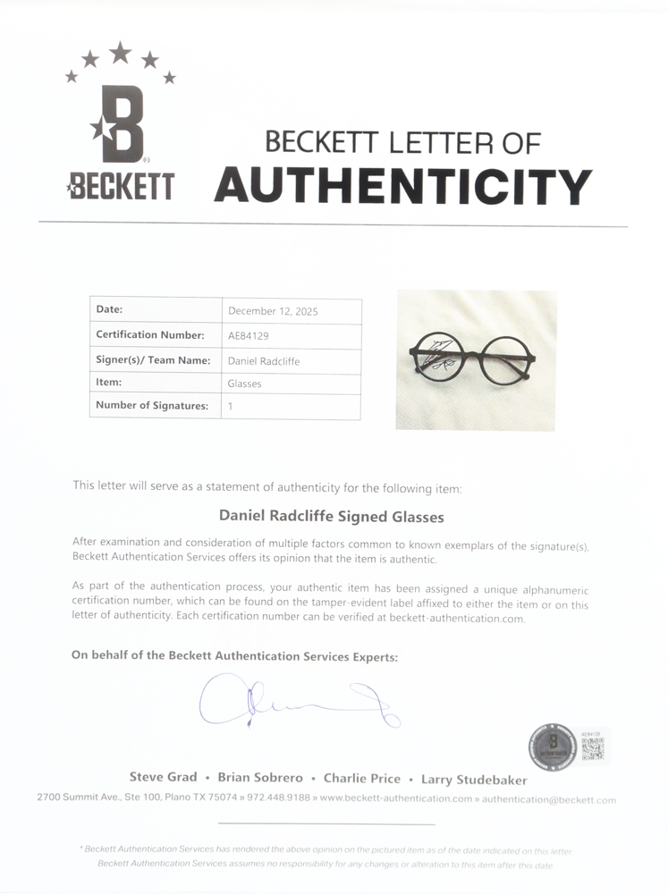 Daniel Radcliffe Signed "Harry Potter" Replica Glasses (Beckett)