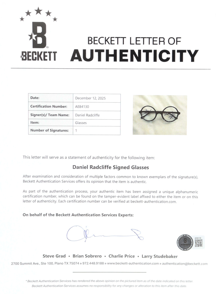 Daniel Radcliffe Signed "Harry Potter" Replica Glasses (Beckett)