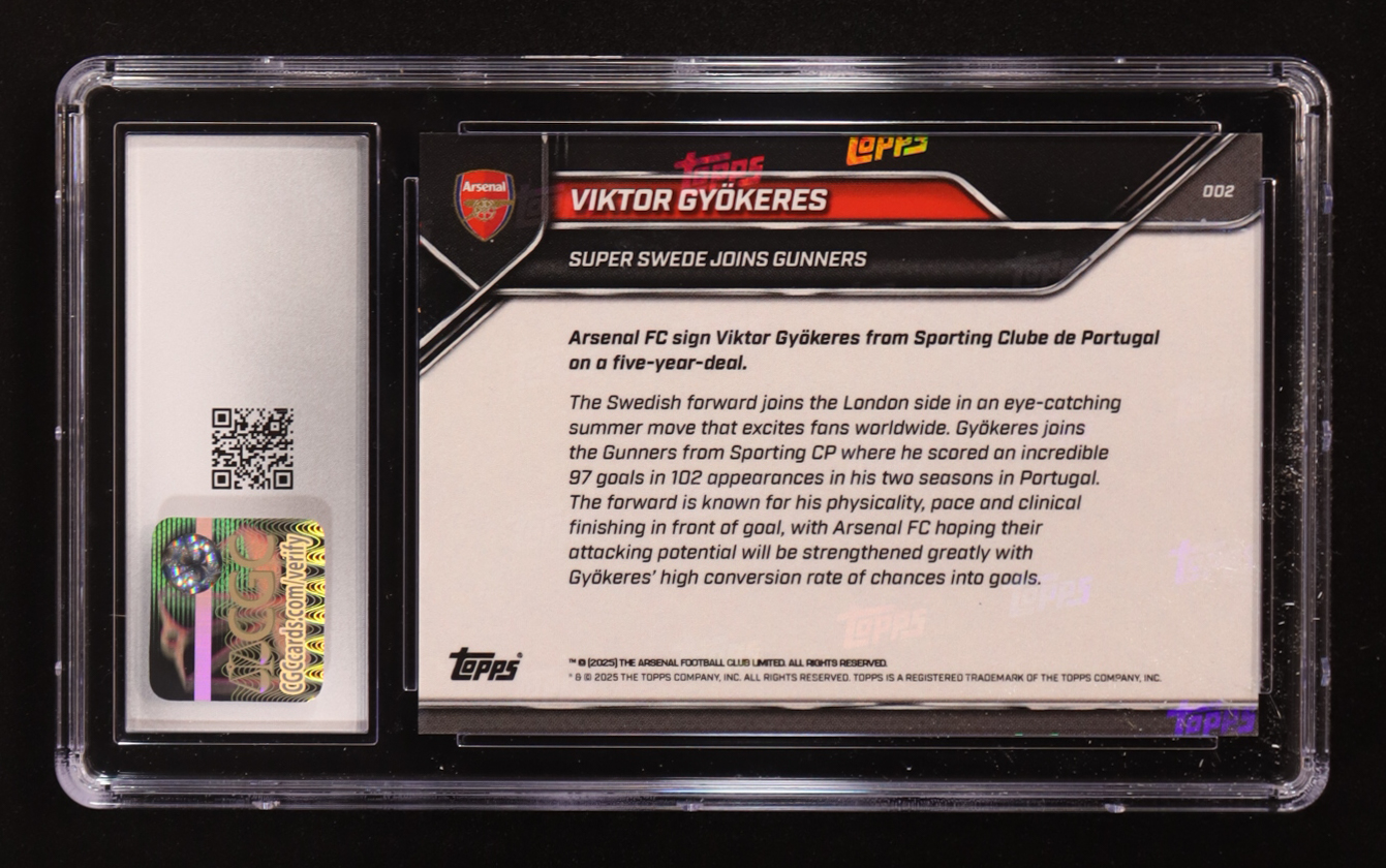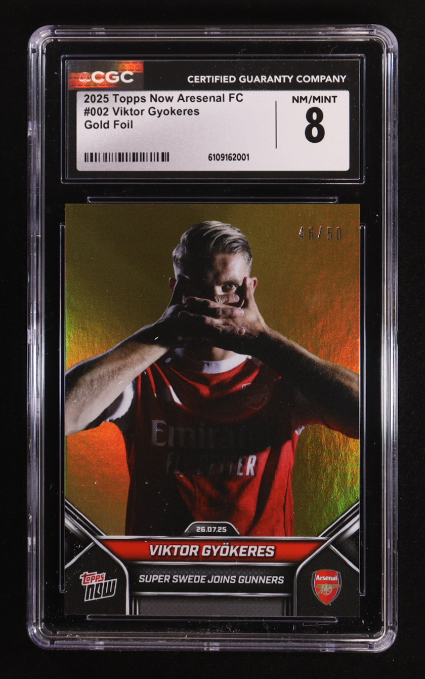 Viktor Gyokeres 2025-26 Arsenal Topps Now Gold Foil #002 #46/50 (CGC 8)