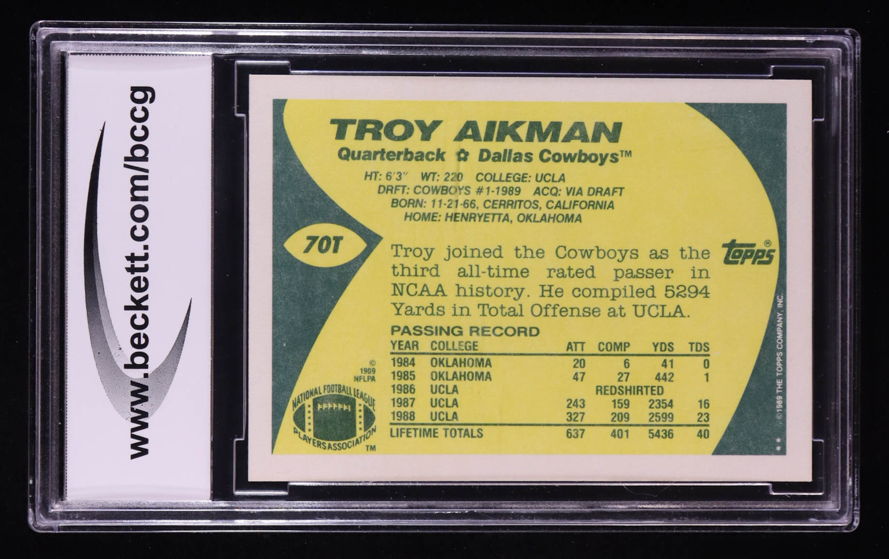Troy Aikman 1989 Topps Traded #70T RC (BCCG 10)