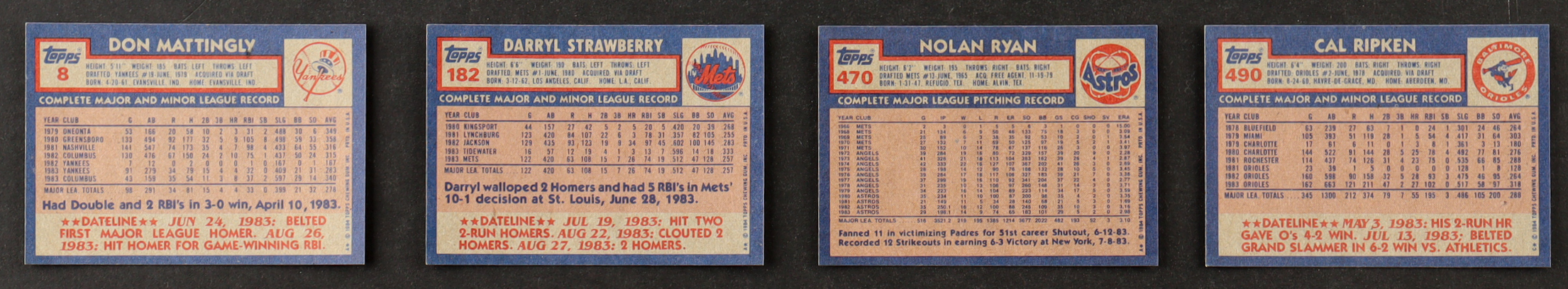 1984 Topps Baseball Complete Set of (792) Cards with Don Mattingly #8 RC, Cal Ripken #490, Darryl Strawberry #182 RC, Nolan Ryan #470