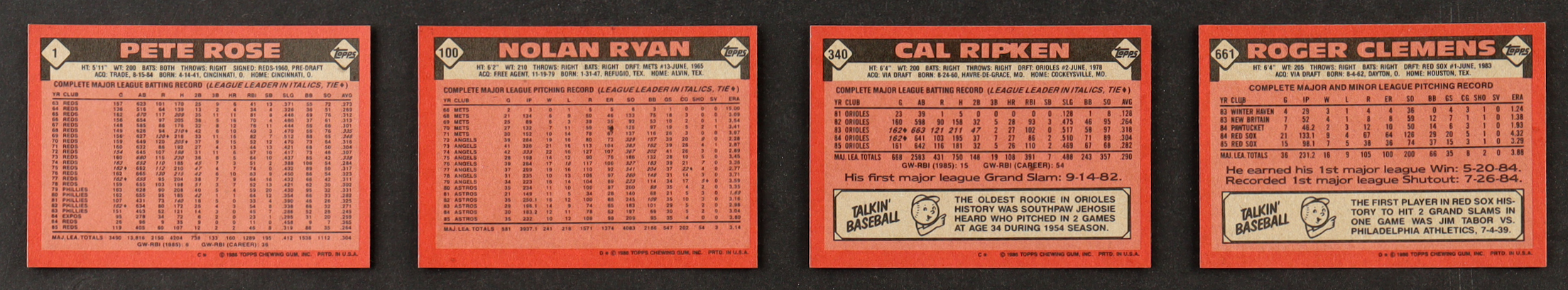 1986 Topps Complete Set of (792) Baseball Cards with Nolan Ryan #100, Roger Clemens #661, Pete Rose #1, Cal Ripken #340