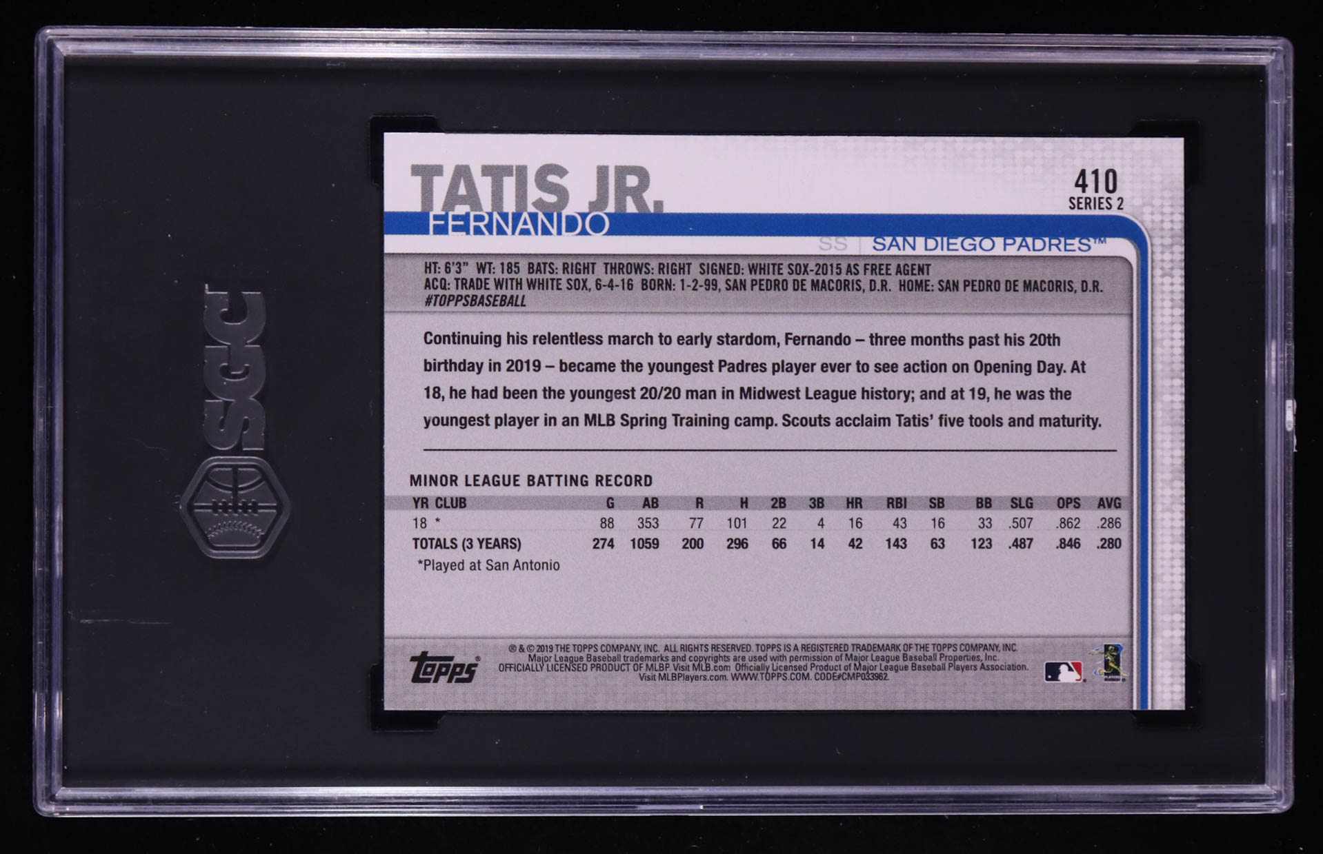 Fernando Tatis Jr. 2019 Topps Series 2 #410 RC (SGC 10)
