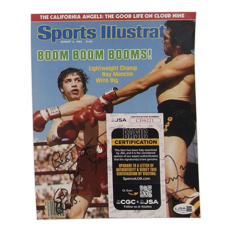 Photo measures 8" x 10" in size and has been hand-signed and inscribed by Ray Mancini (HOF).