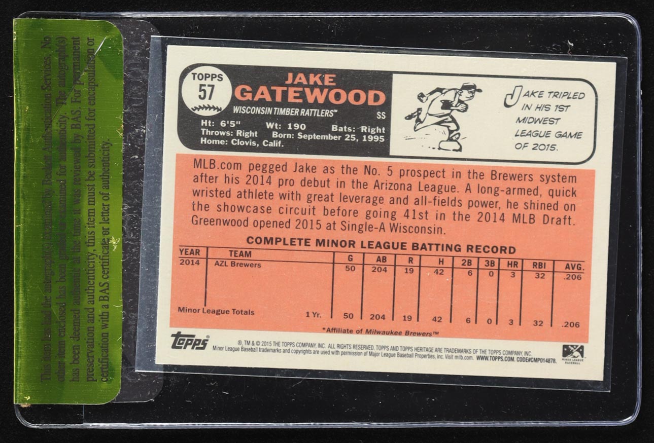 Jake Gatewood Signed 2015 Topps Heritage Minors #57 RC (Beckett)