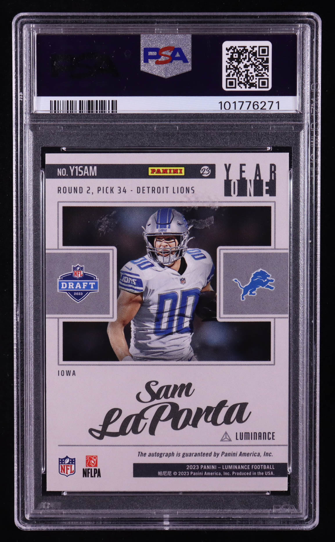 Sam Laporta 2023 Panini Luminance Year One Signatures Red #Y1SAM RC (PSA 8)