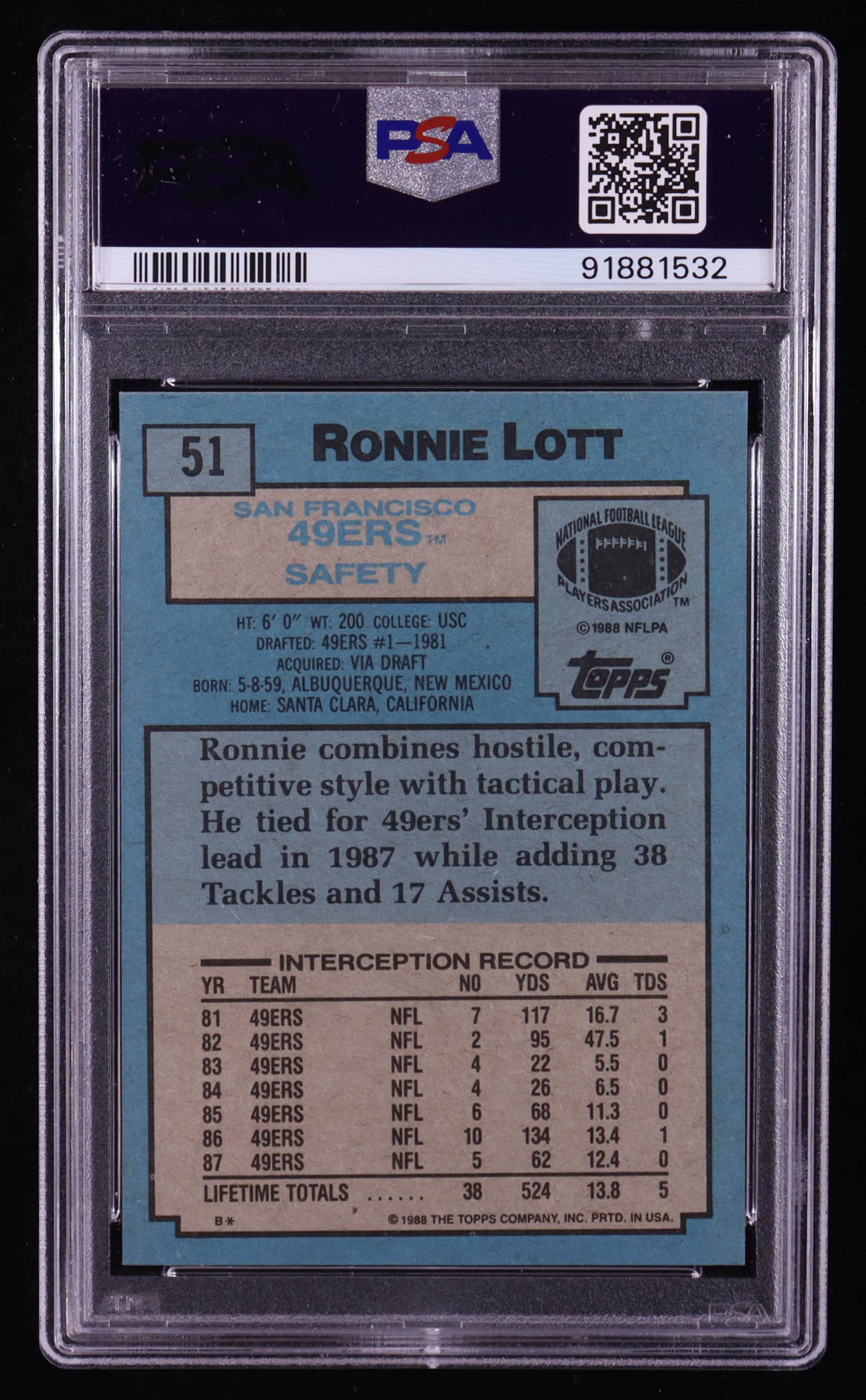 Ronnie Lott 1988 Topps #51 (PSA 9)