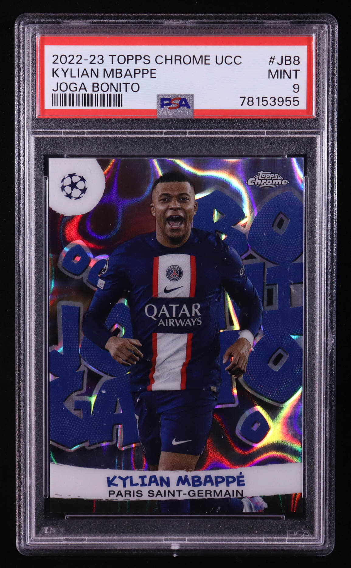 Kylian Mbappe 2022-23 Topps Chrome UCC Joga Bonito #JB-8 (PSA 9)