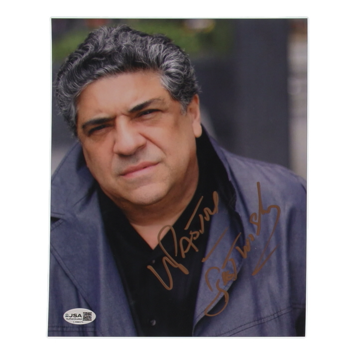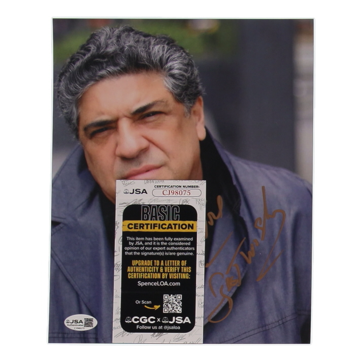 Photo measures 8" x 10" in size and has been hand-signed and inscribed by Vincent Pastore.