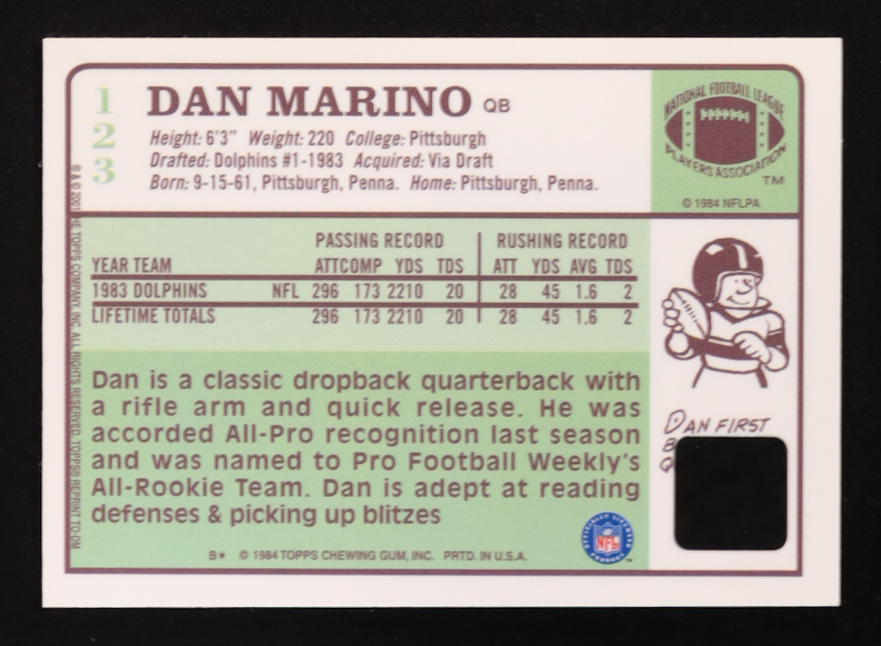 Dan Marino 2001 Topps Rookie Reprint Jerseys #TODM