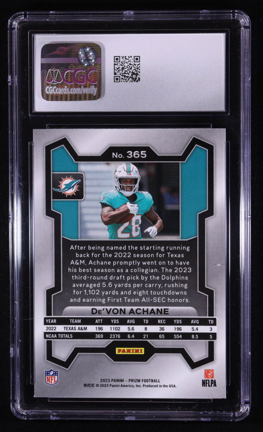 De'Von Achane 2023 Panini Prizm #365 RC (CGC 9)