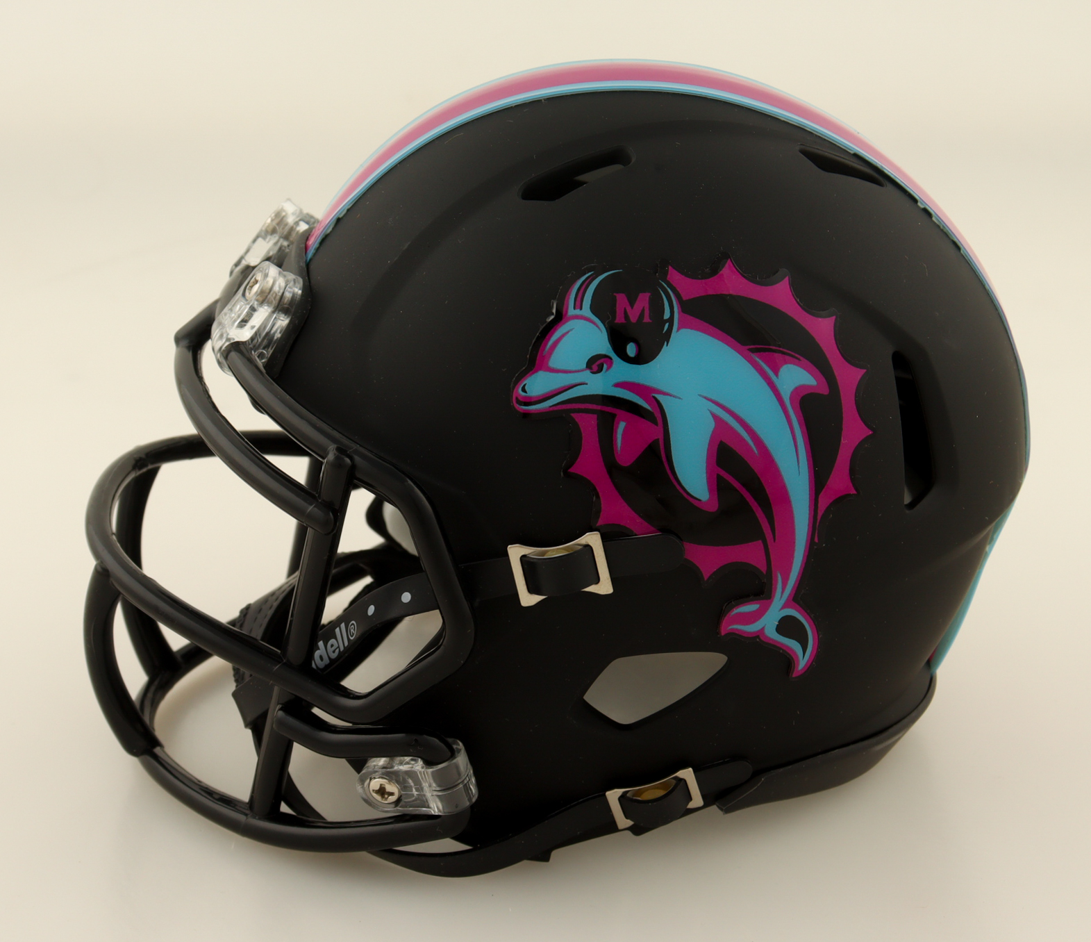 Riddell Miami Dolphins Miami Vice Alternate Speed mini helmet. Hand-signed by Devon Achane.