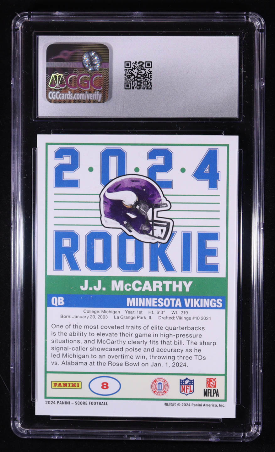 JJ McCarthy 2024 Score 35th Anniversary Rookie #8 RC (CGC 10)