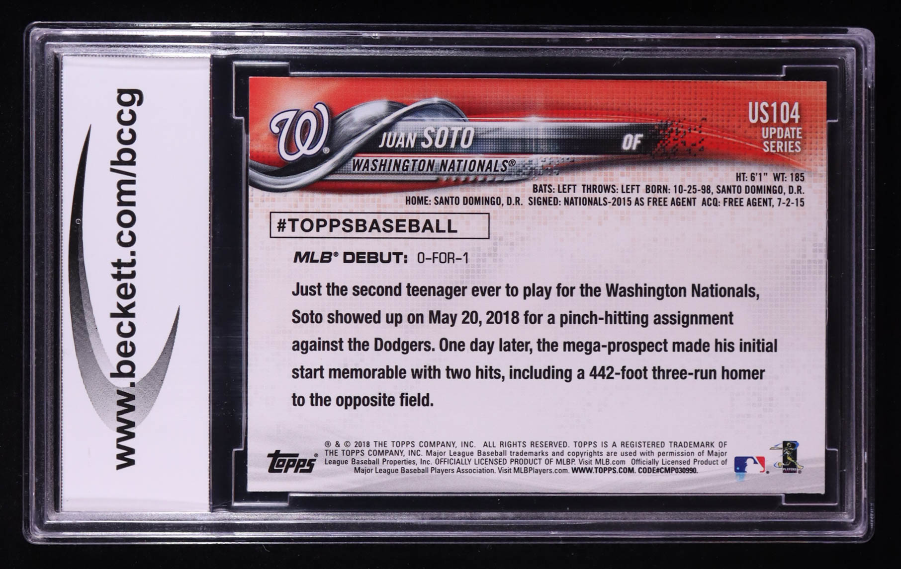 Juan Soto 2018 Topps Update #US104 RD RC (BCCG 10)