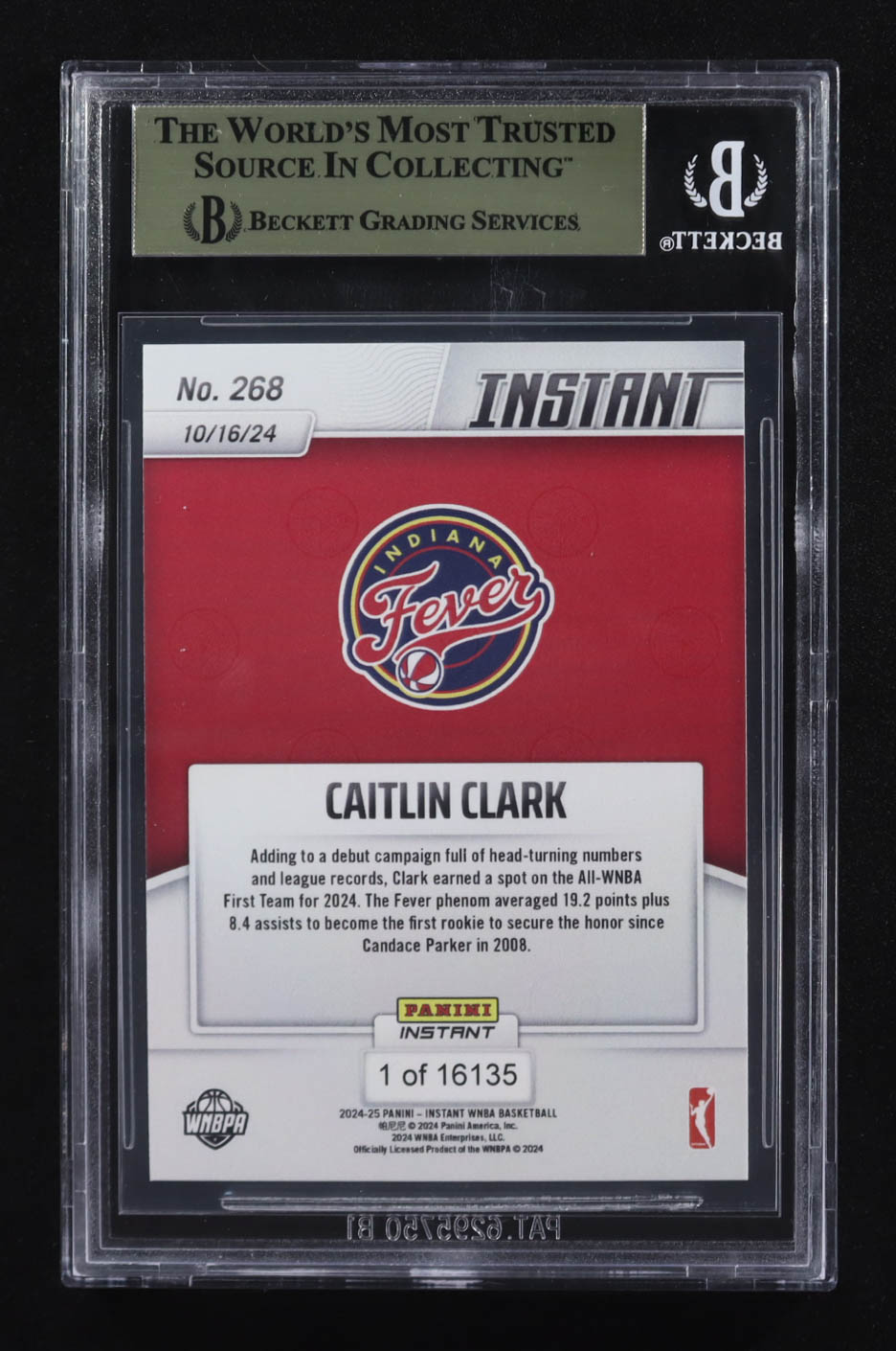 Caitlin Clark 2024 Panini Instant WNBA #268 RC #1/16135 (BGS 9.5)
