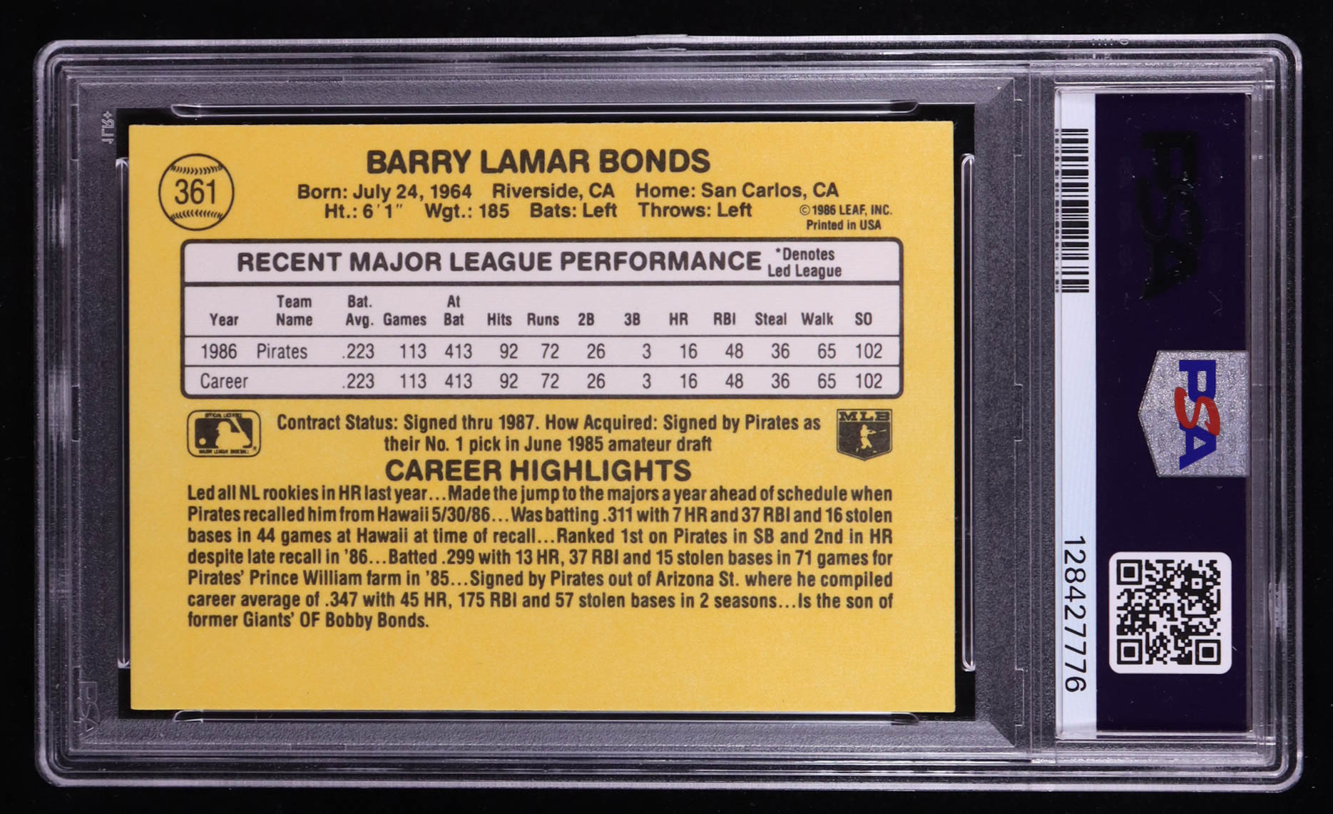 Barry Bonds 1987 Donruss #361 RC (PSA 9)