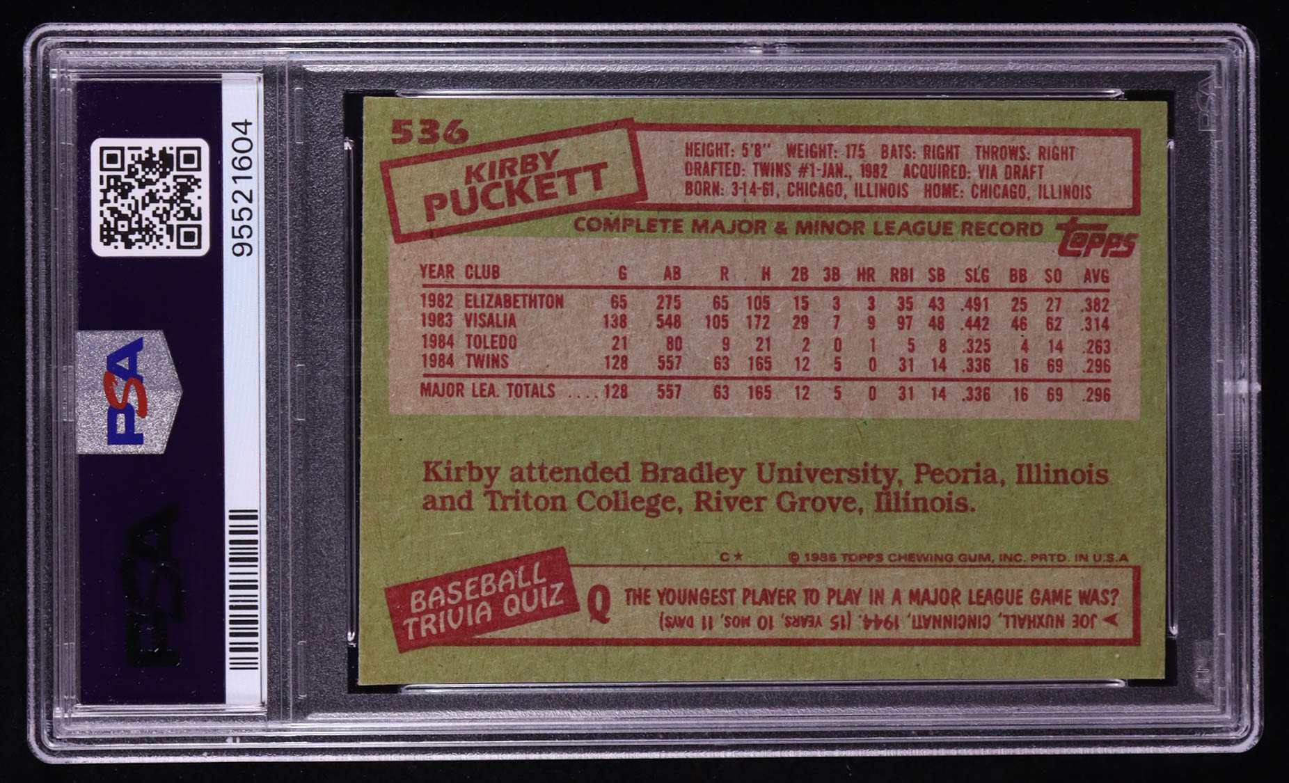 Kirby Puckett 1985 Topps #536 RC (PSA 8)