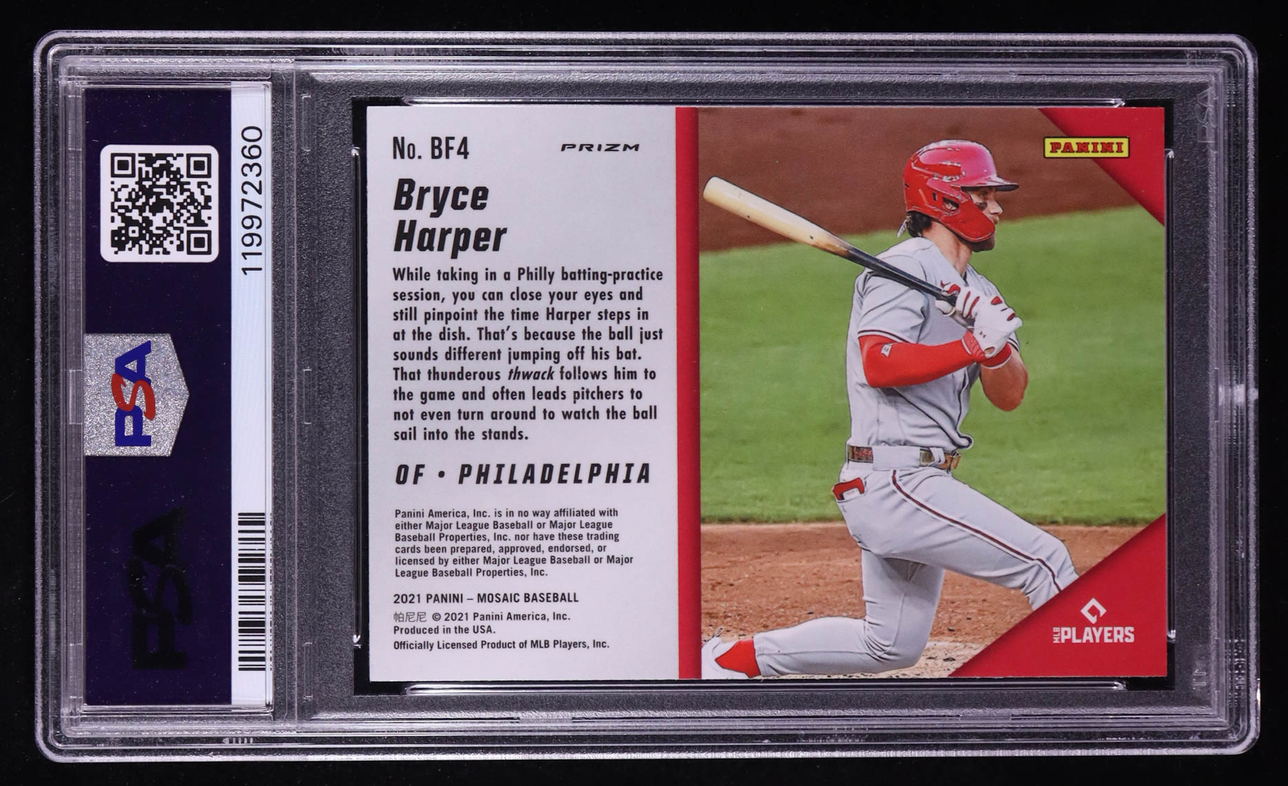 Bryce Harper 2021 Panini Mosaic Big Fly Mosaic Green #4 (PSA 10)