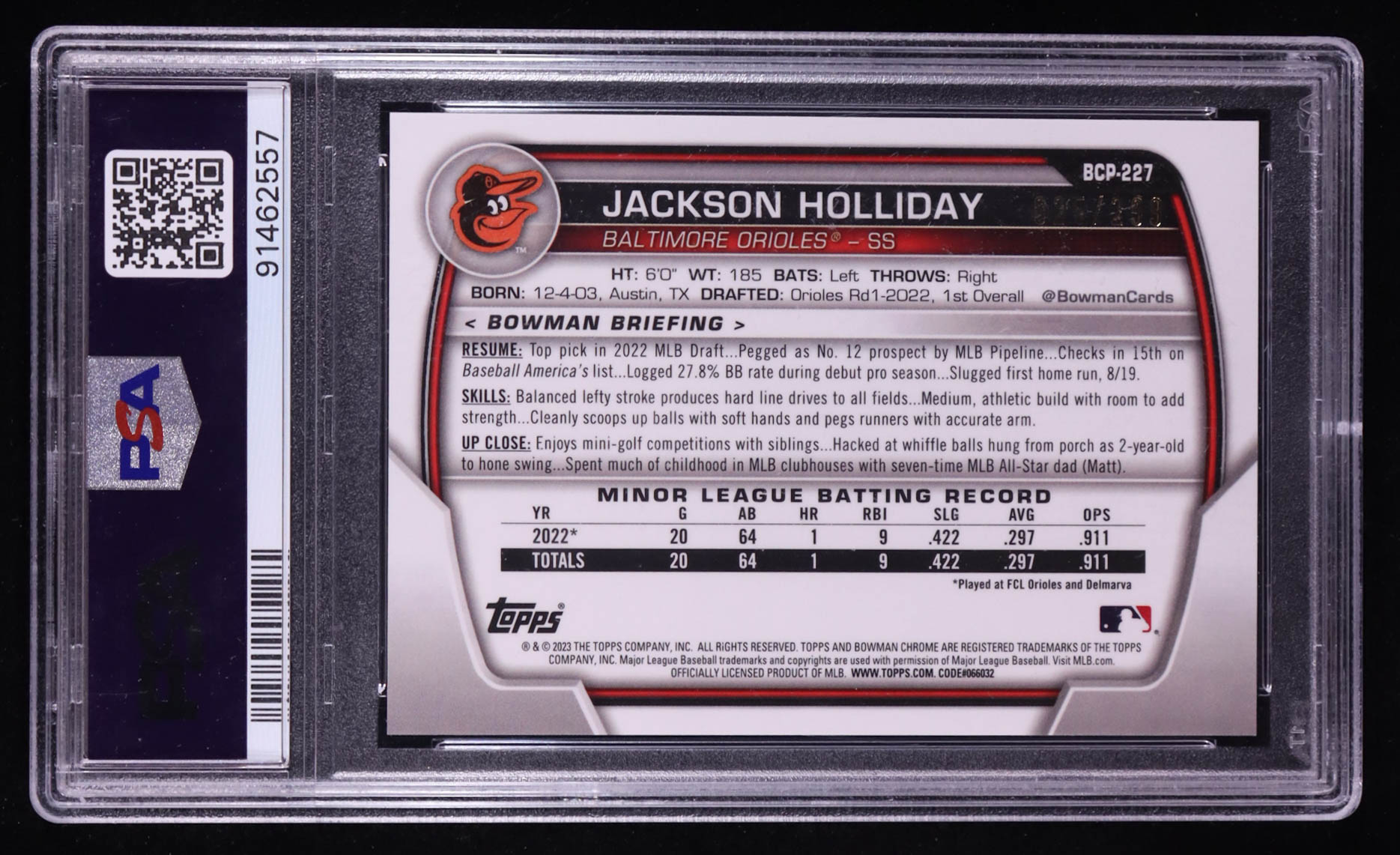 Jackson Holliday 2023 Bowman Chrome Mega Box Prospects Purple Refractors #BCP227 #025/299 (PSA 10)