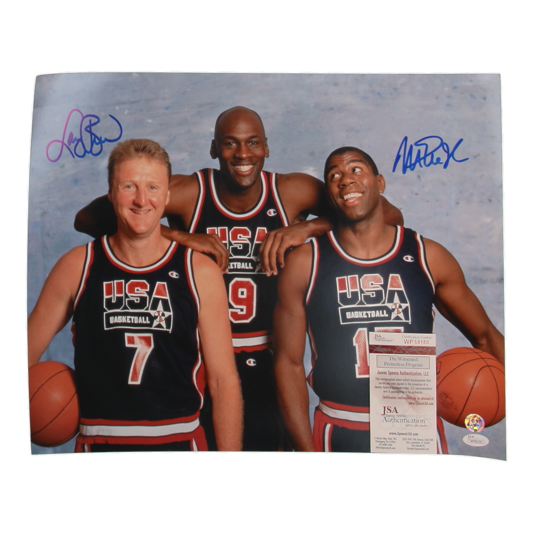 Larry Bird & Magic Johnson Signed Team USA 16x20 Photo (JSA & Bird)