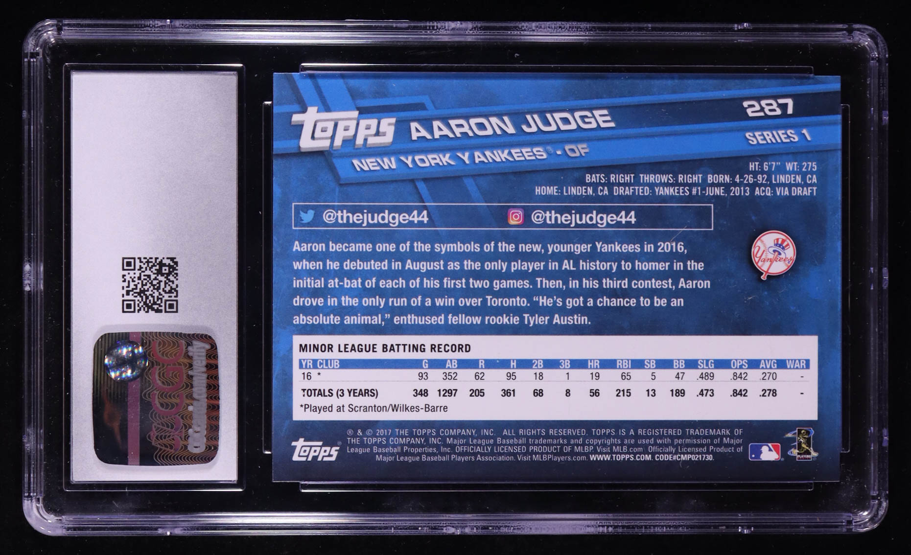 Aaron Judge 2017 Topps #287A RC (CGC 10)