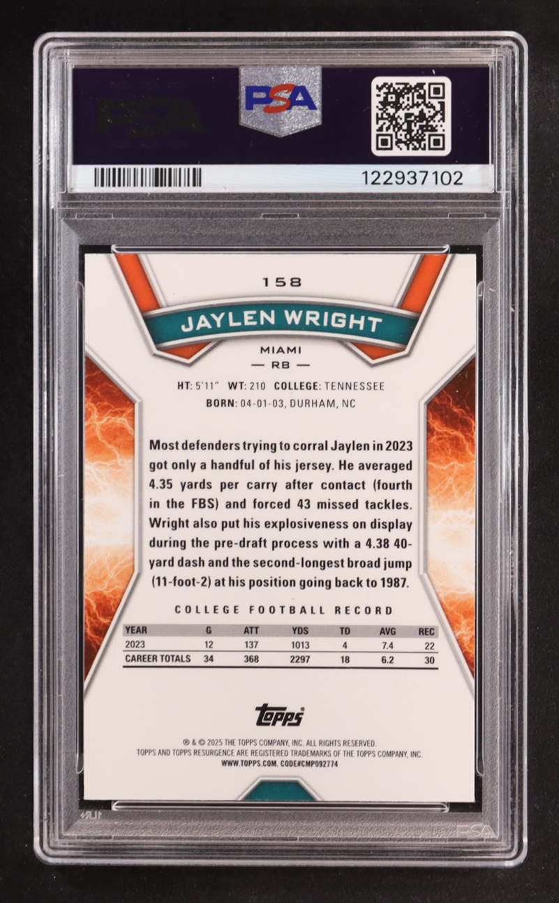 Jaylen Wright 2024 Topps Resurgence Yellow Surge #158 #045/225 RC (PSA 9)