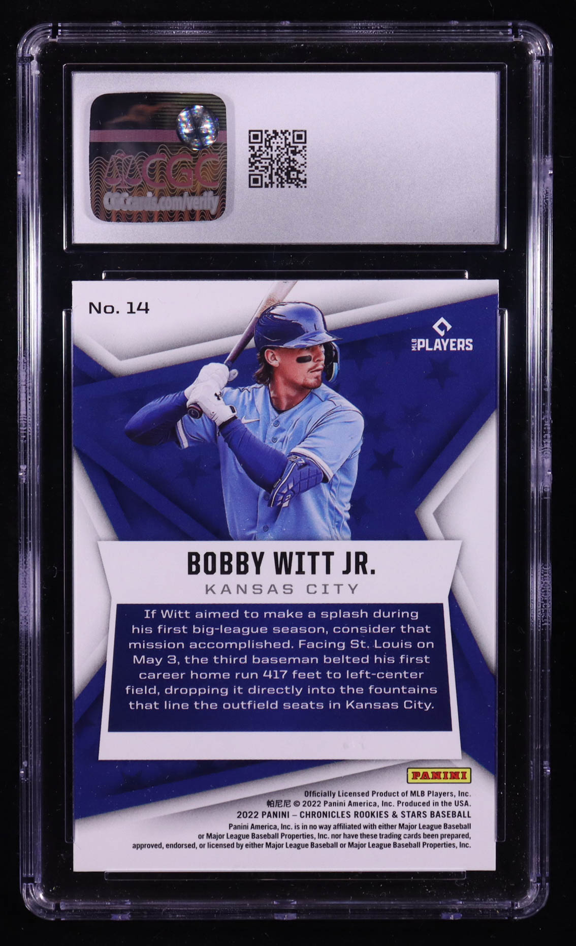 Bobby Witt Jr. 2022 Panini Chronicles Rookies and Stars #14 RC (CGC 10)