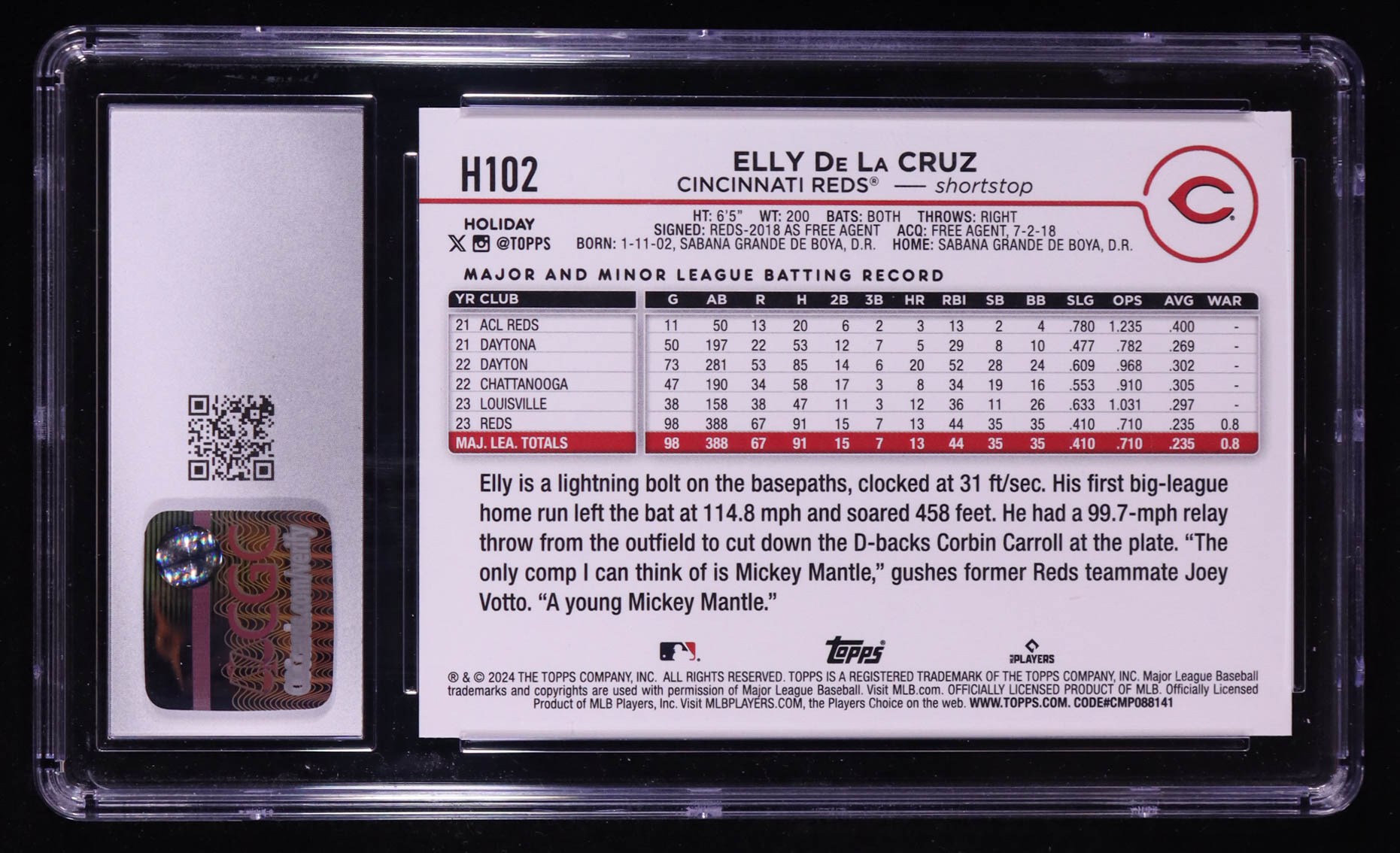 Elly De La Cruz 2024 Topps Holiday #H102 RC (CGC 10)