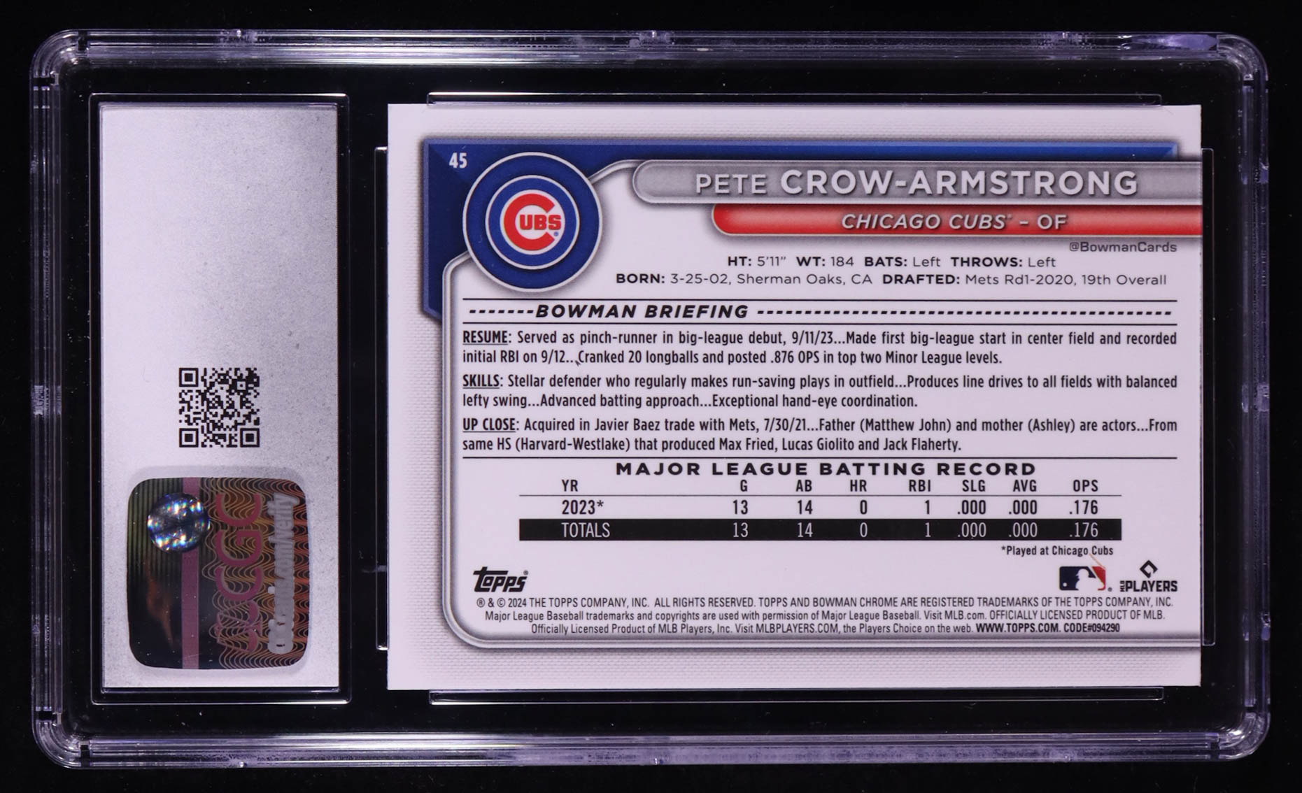 Pete Crow-Armstrong 2024 Bowman Chrome Mega Box #45 RC (CGC 10)