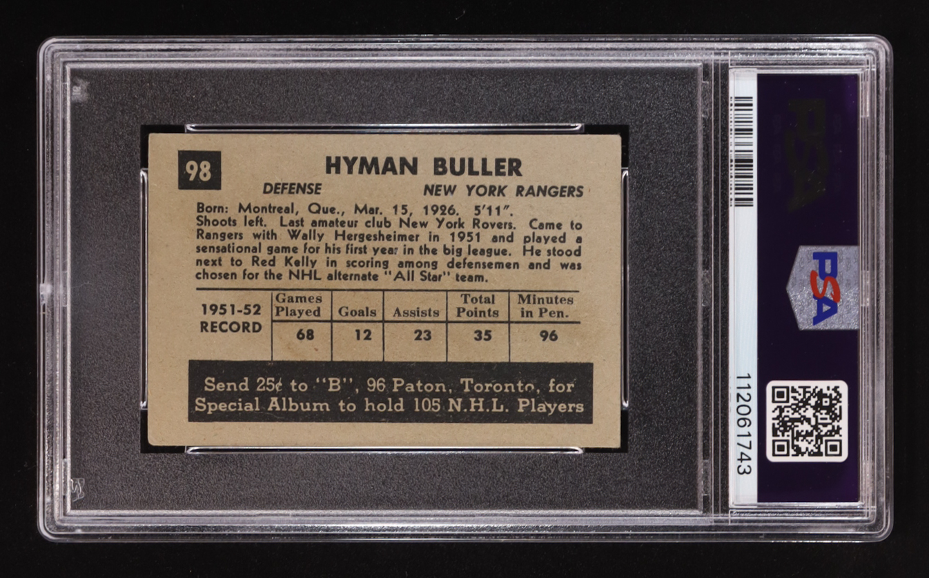 Hy Buller 1952-53 Parkhurst #98 (PSA 4)