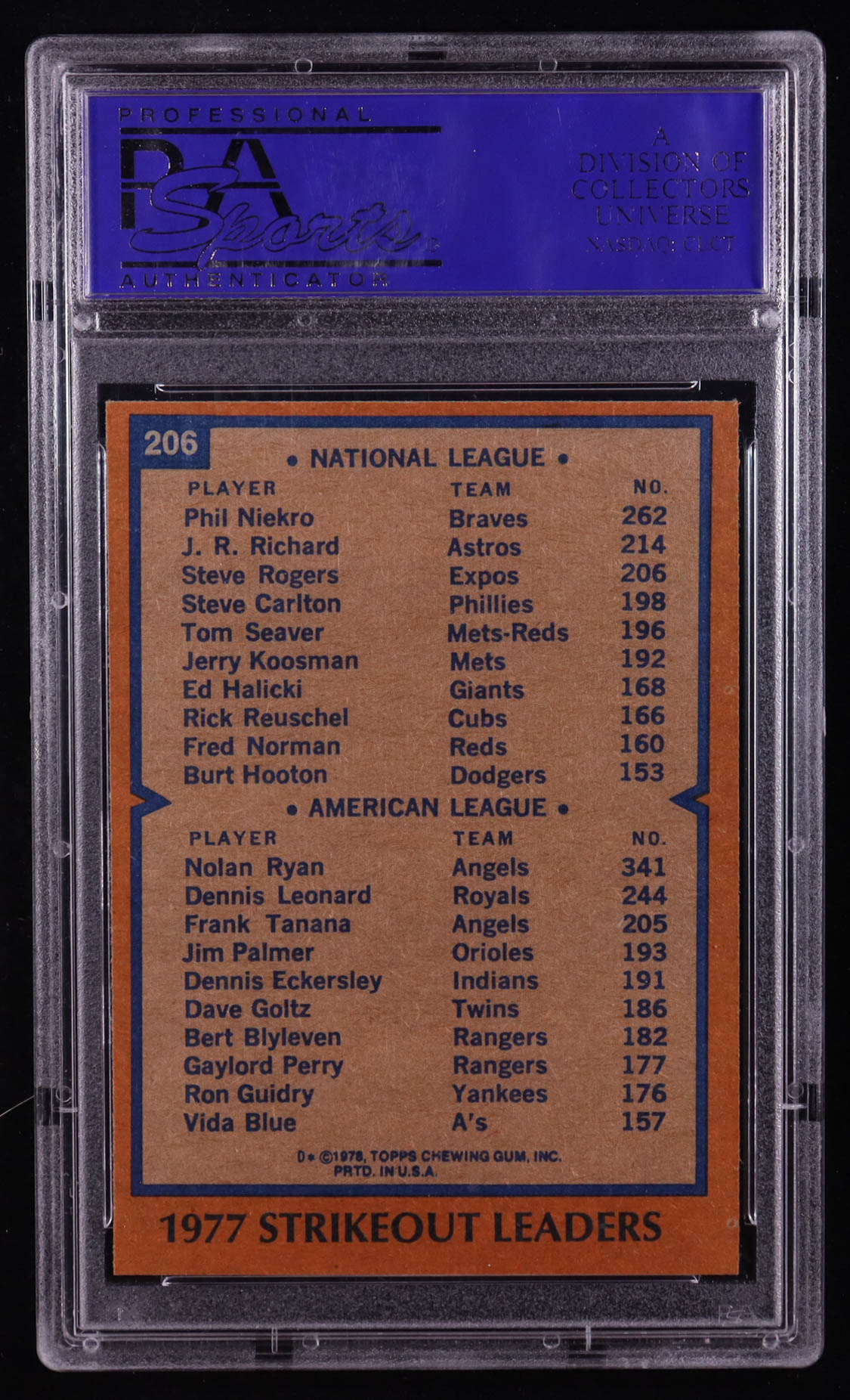 Phil Niekro / Nolan Ryan 1978 Topps #206 Strikeout Leaders DP (PSA 8)