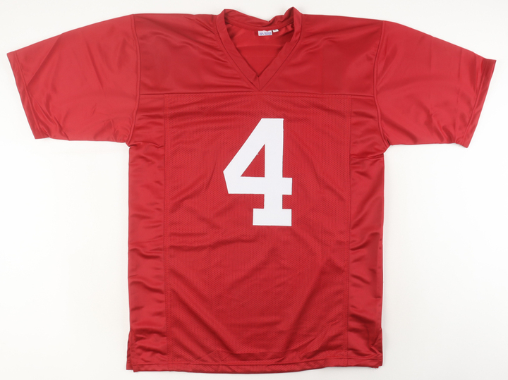 Custom jersey with everything sewn on, size XL. Hand-signed by Jalen Milroe.
