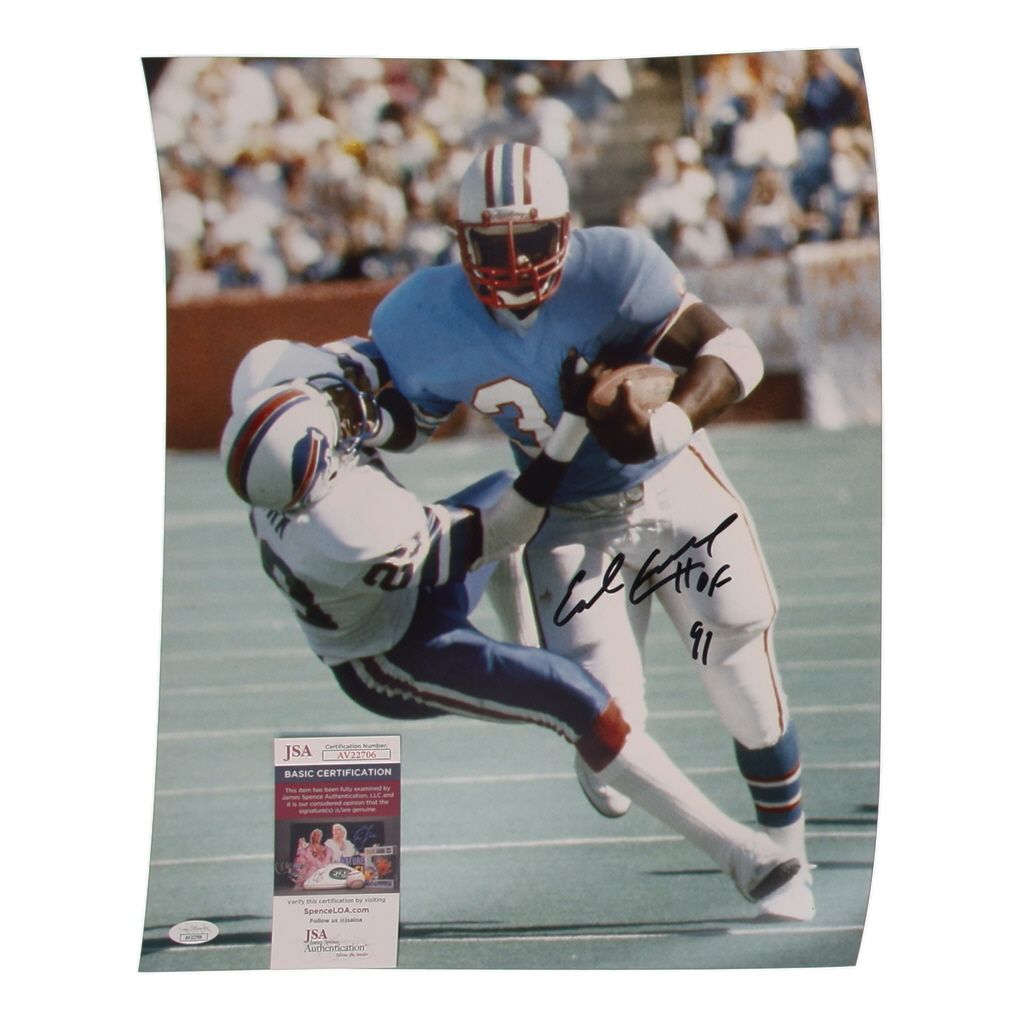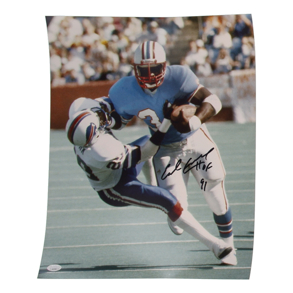 Photo measures 16" x 20" in size. Hand-signed by Earl Campbell (Houston Oilers, HOF).