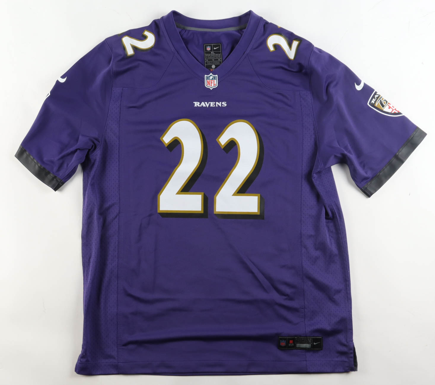 Nike jersey with everything printed on, size XL. Hand-signed by Derrick Henry (Baltimore Ravens). Please note, the signature is smudged.