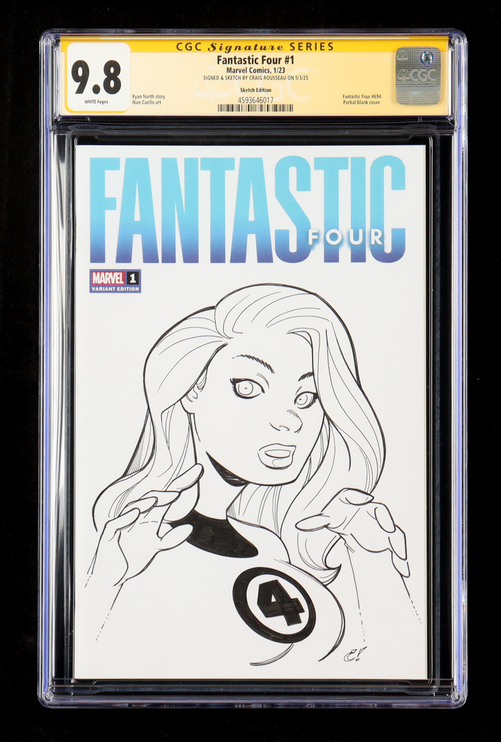 Craig Rousseau Signed & Sketched 2023 "Fantastic Four" Issue #1 Sketch Edition Cover Marvel Comic Book (CGC 9.8)