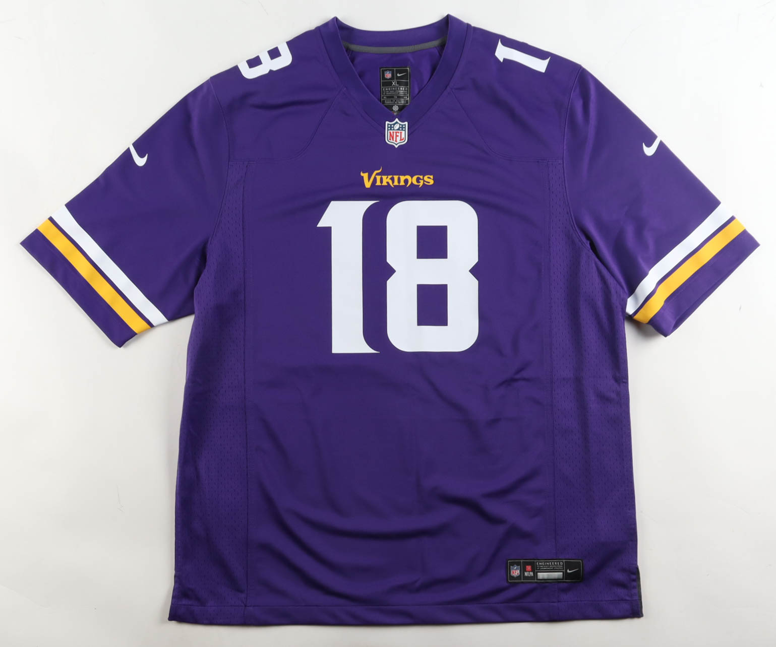 Nike jersey with everything pressed on, size XL. Hand-signed by Justin Jefferson (Minnesota Vikings).