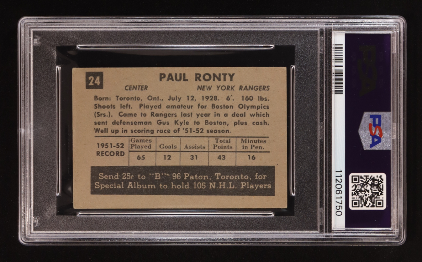 Paul Ronty 1952-53 Parkhurst #24 (PSA 5)