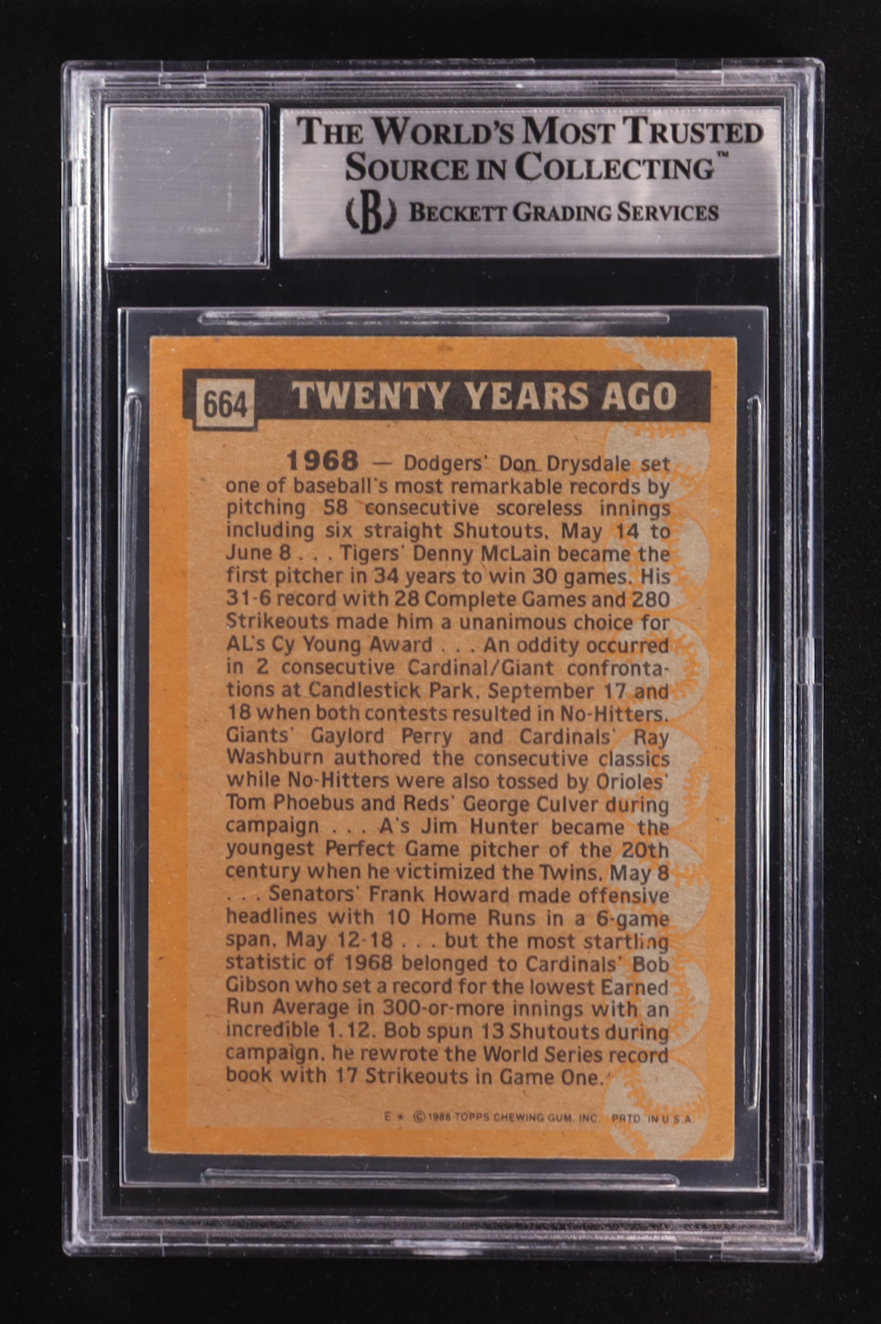 Bob Gibson Signed 1988 Topps TBC '68 Bob Gibson Collection #664 (BGS | Autograph Graded BGS 10)