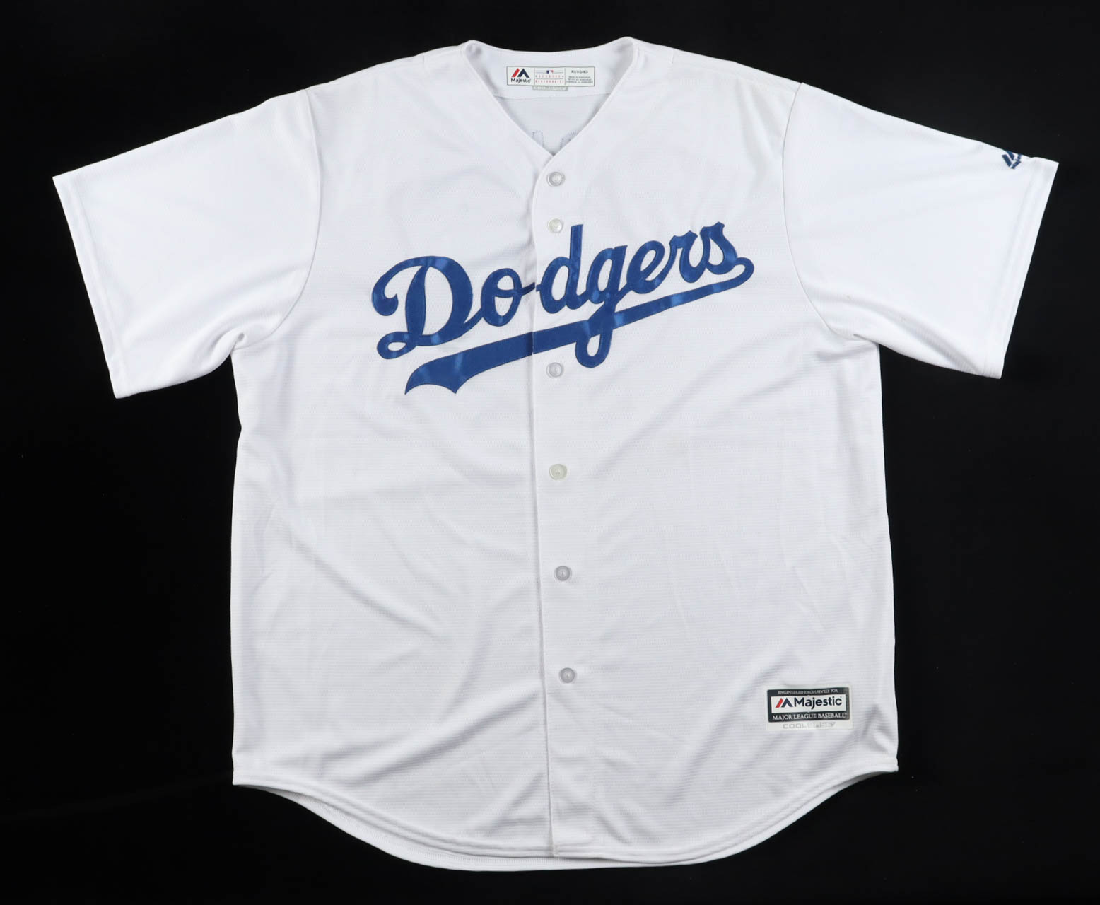 Majestic authentic jersey with everything sewn on, size XL. Hand-signed by Justin Turner (Los Angeles Dodgers).