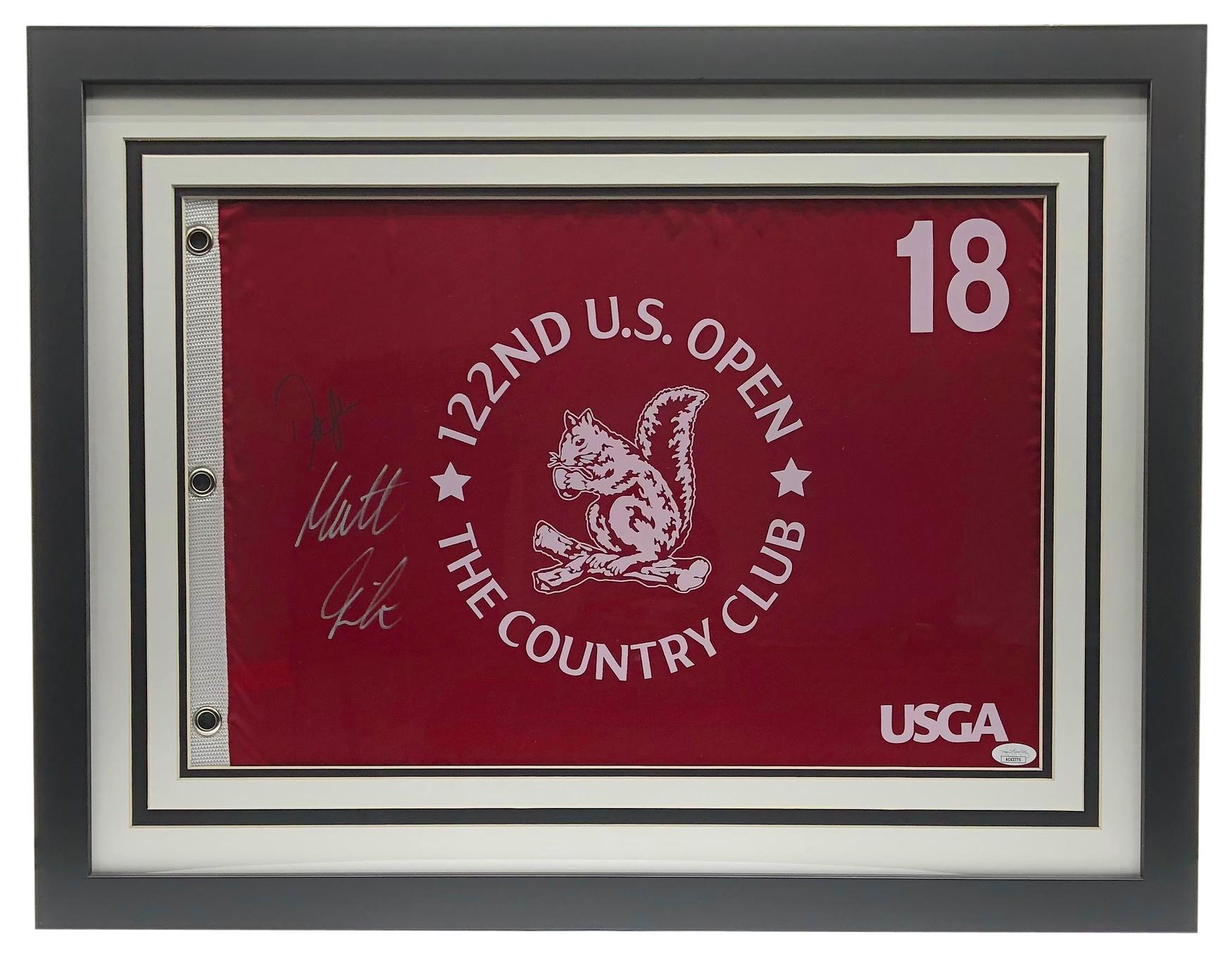 Matt Fitzpatrick & Dustin Johnson Signed 122nd U.S. Open Custom Framed Pin Flag (JSA)