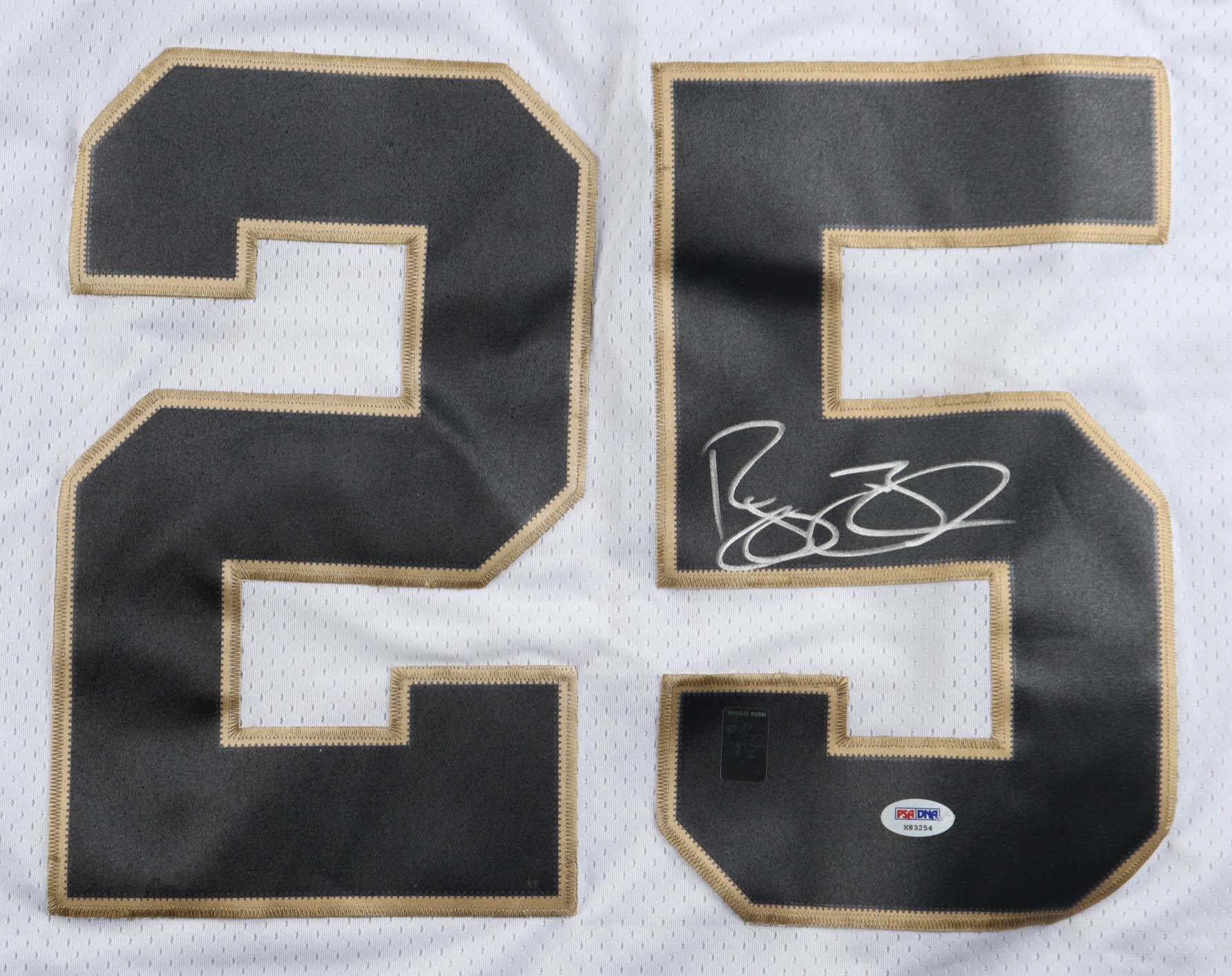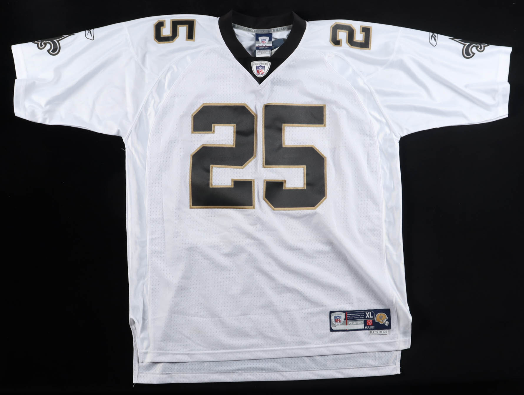 Reebok authentic jersey with everything sewn on, size XL. Hand-signed by Reggie Bush (New Orleans Saints).