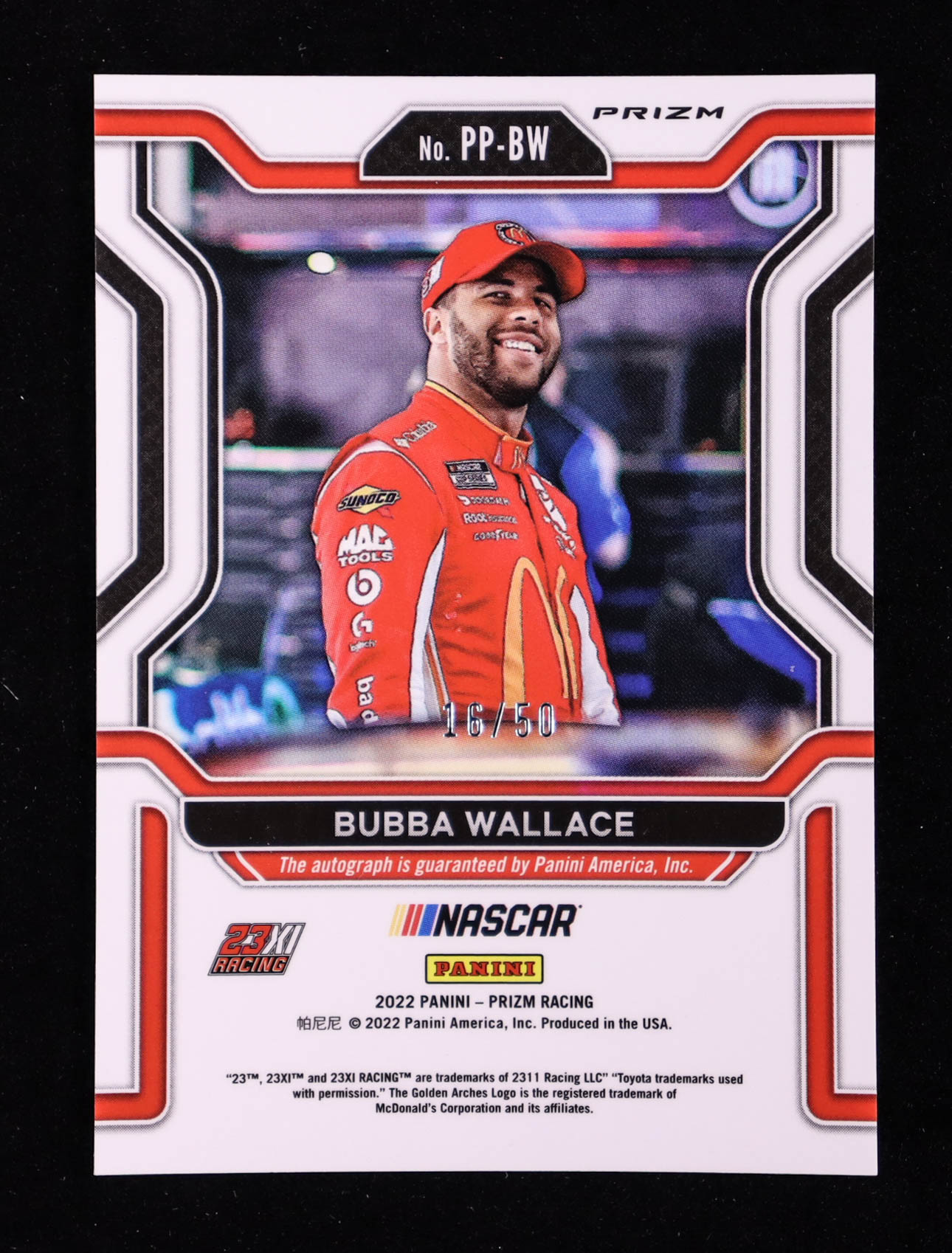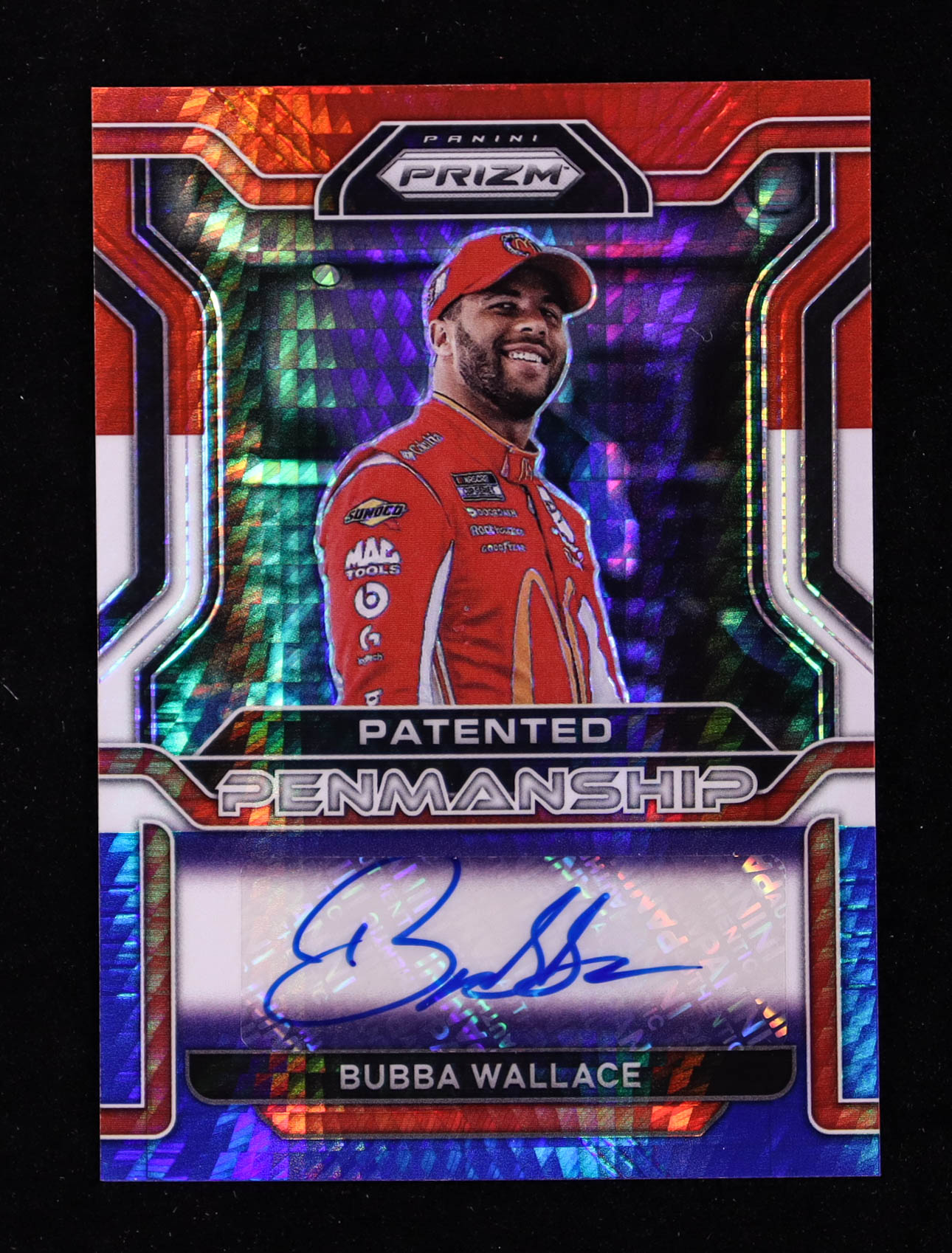 Bubba Wallace 2022 Panini Prizm Patented Penmanship Prizms Hyper Red White and Blue #5 #16/50