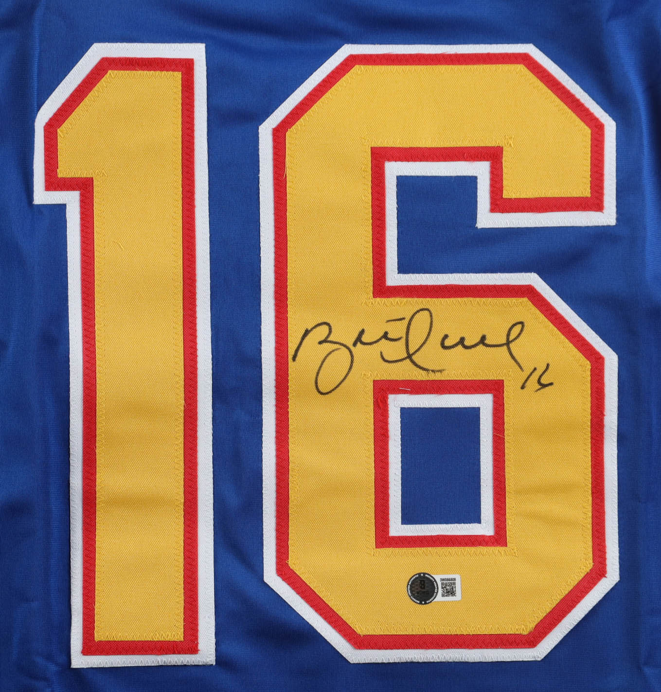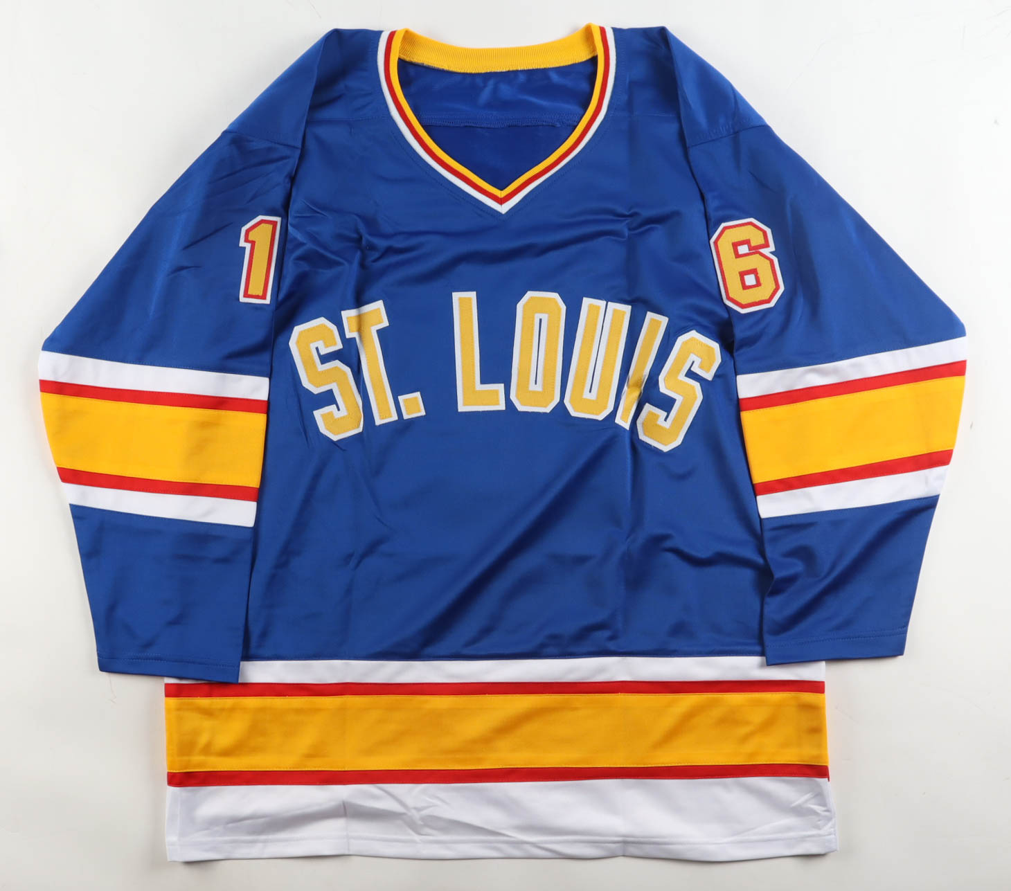Custom jersey with everything sewn on, size XL. Hand-signed by Brett Hull (St. Louis Blues, HOF).